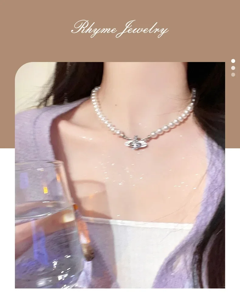 2024 New Luxury Fashion Sweater Chain Necklace Women's Zirconia Tungsten Planet Pearl Necklace High-end Feel Sweater Chain