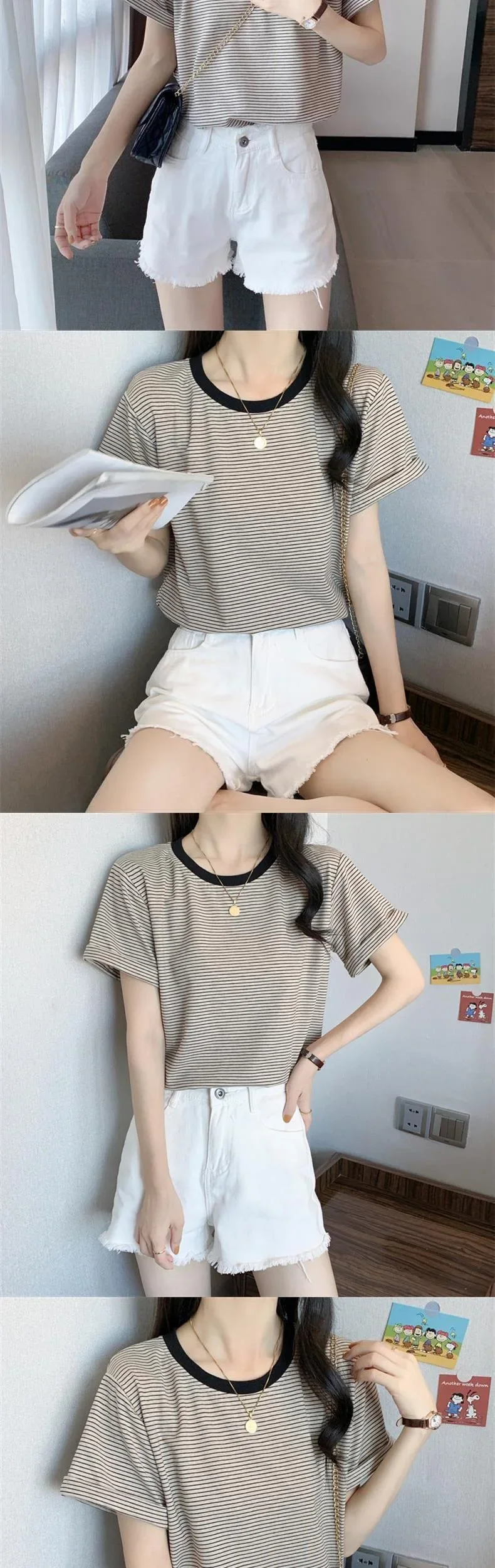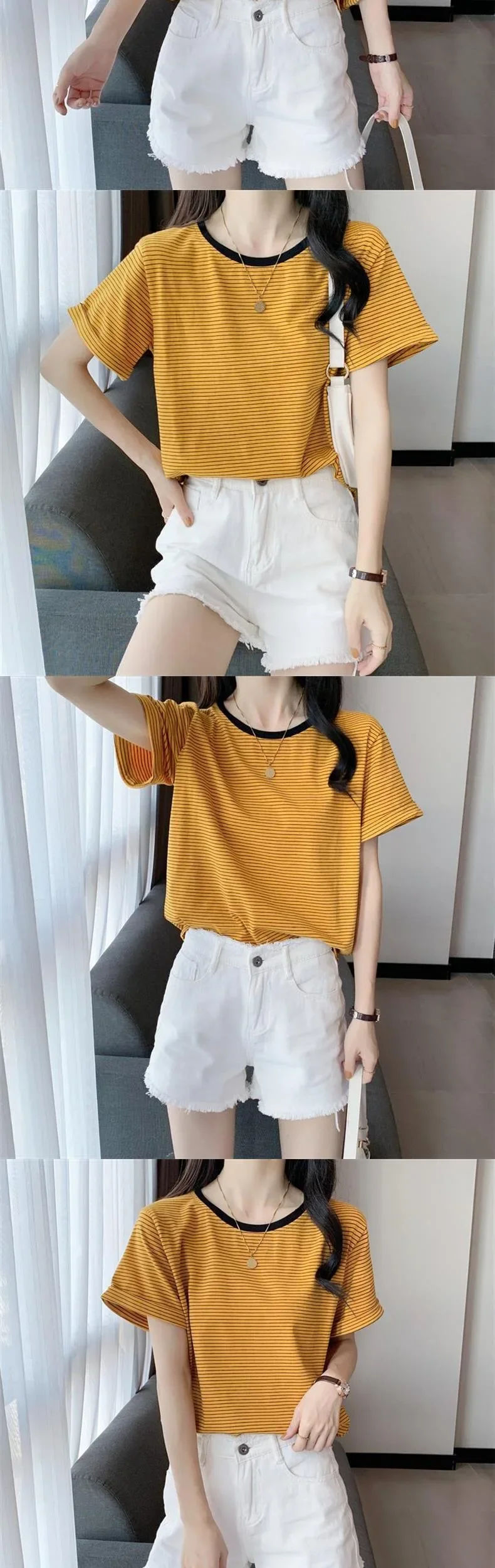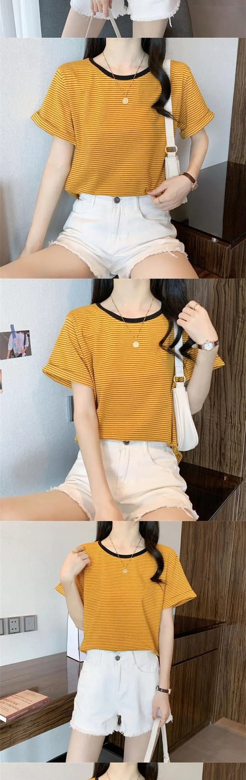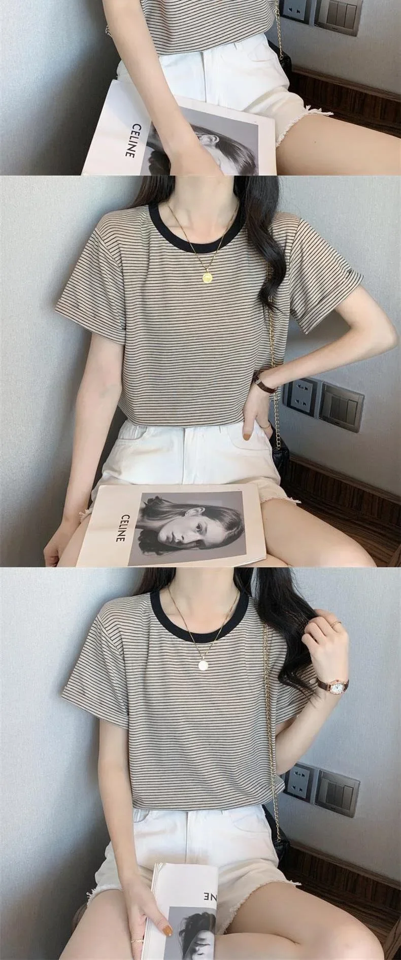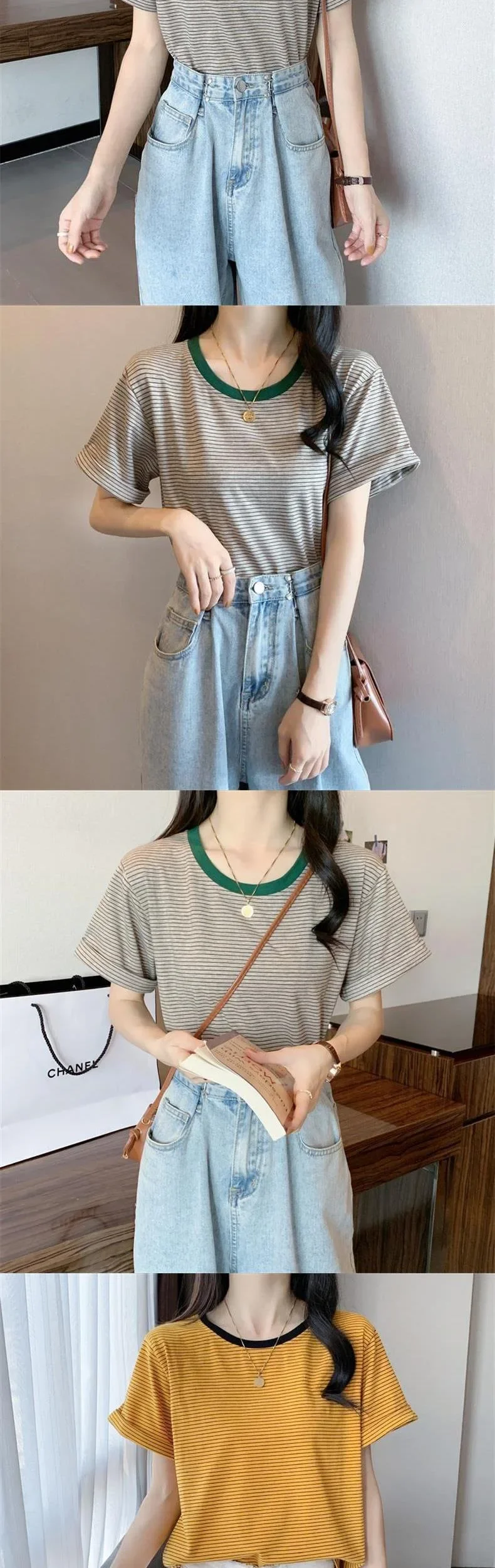 2024 New Round Neck Loose-Fit Stylish Striped T-Shirt Short Sleeves Women's Summer Round Neck T-Shirt Crewe Neck Design
