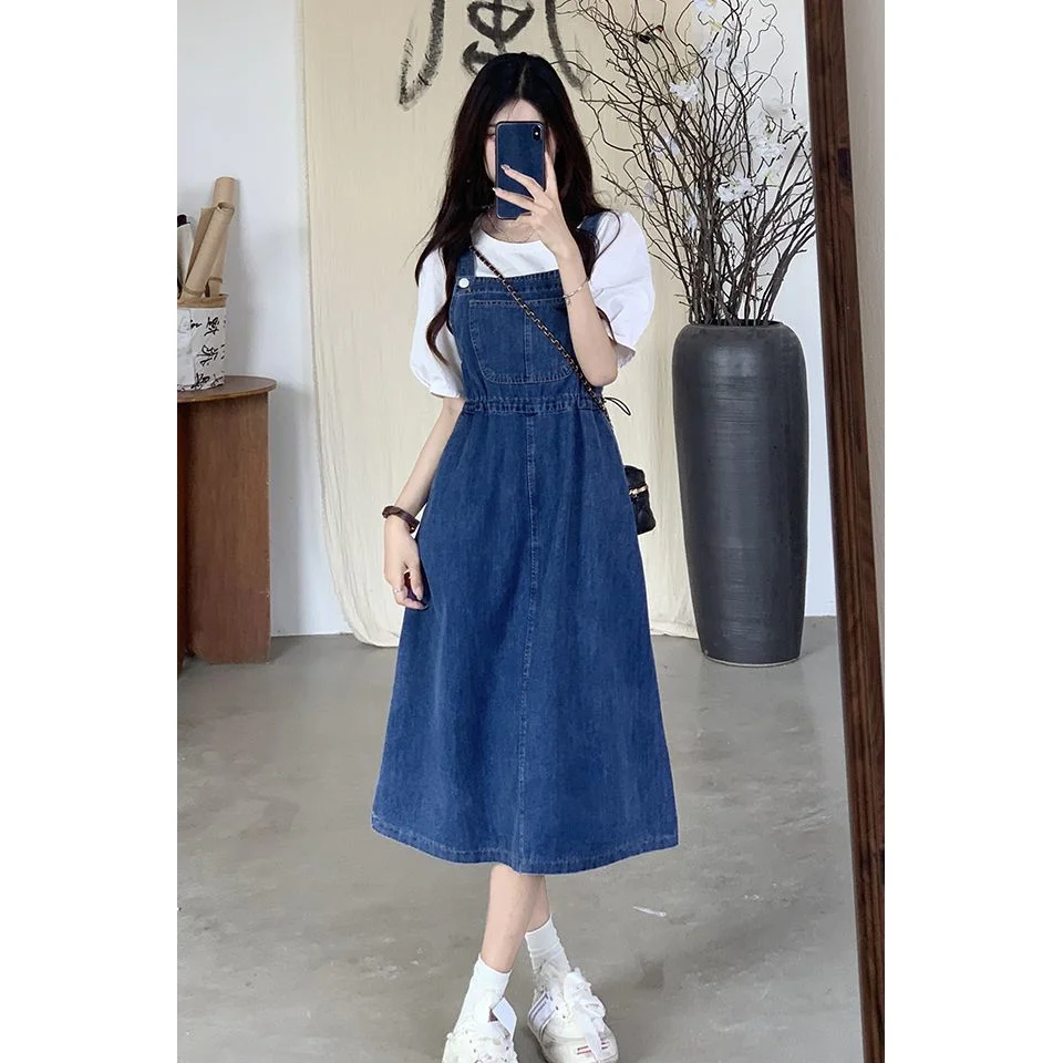 2025 Fashion Women Denim Suspender Skirt Spring Summer Causal Strap Female High Waist A-line Solid Lace-up Woman Skirt
