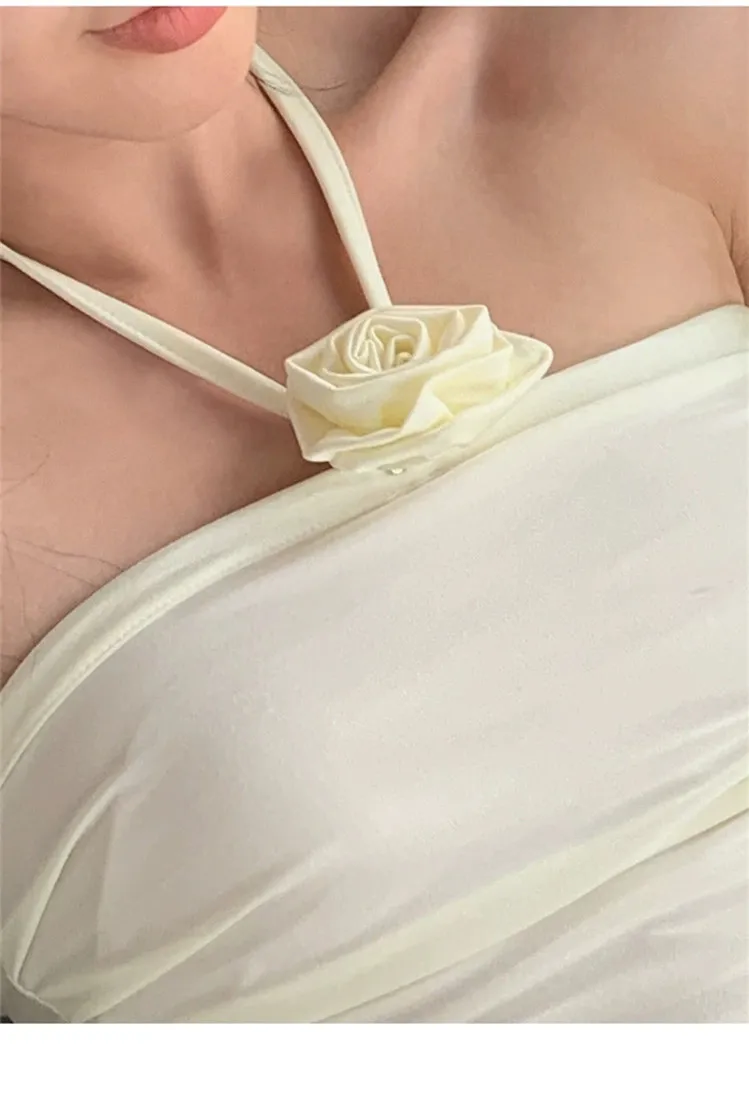 2025 Women One Piece Swimsuit 3D Flower Korea Style Bandeau Swimwear Beach Wear Padded Bathing Suit Holiday Monokini Summer