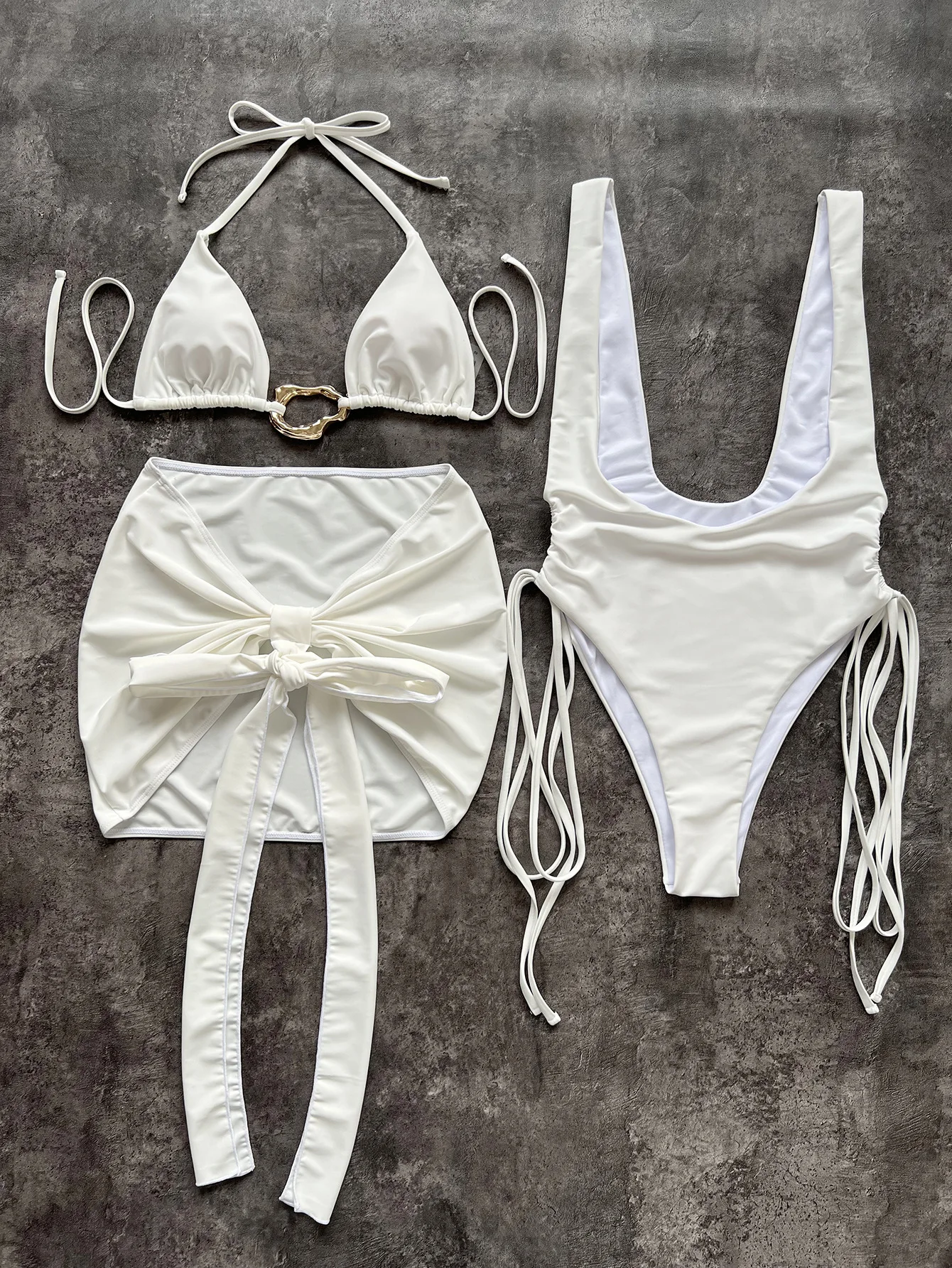 3 Piece Hollow Out Bikini Set Mini Skirt Women Swimsuit 2025 Swimwear Sexy Bikini Push Up Beachwer Bathing Suit Biquini Female