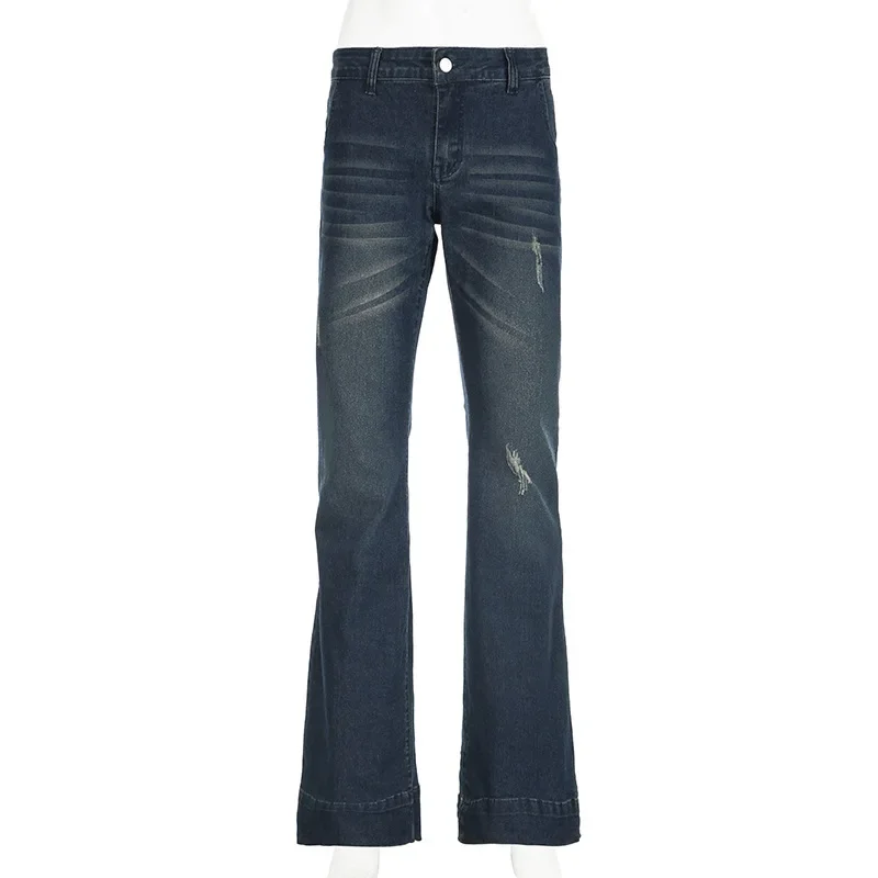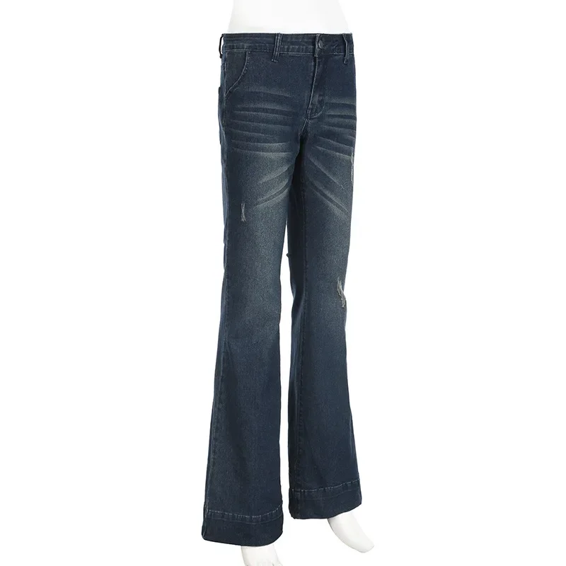American Retro Low Waist Bell Bottom Jeans Women Summer Fashionable Versatile Casual Long Pants Washed Effect Classic Style
