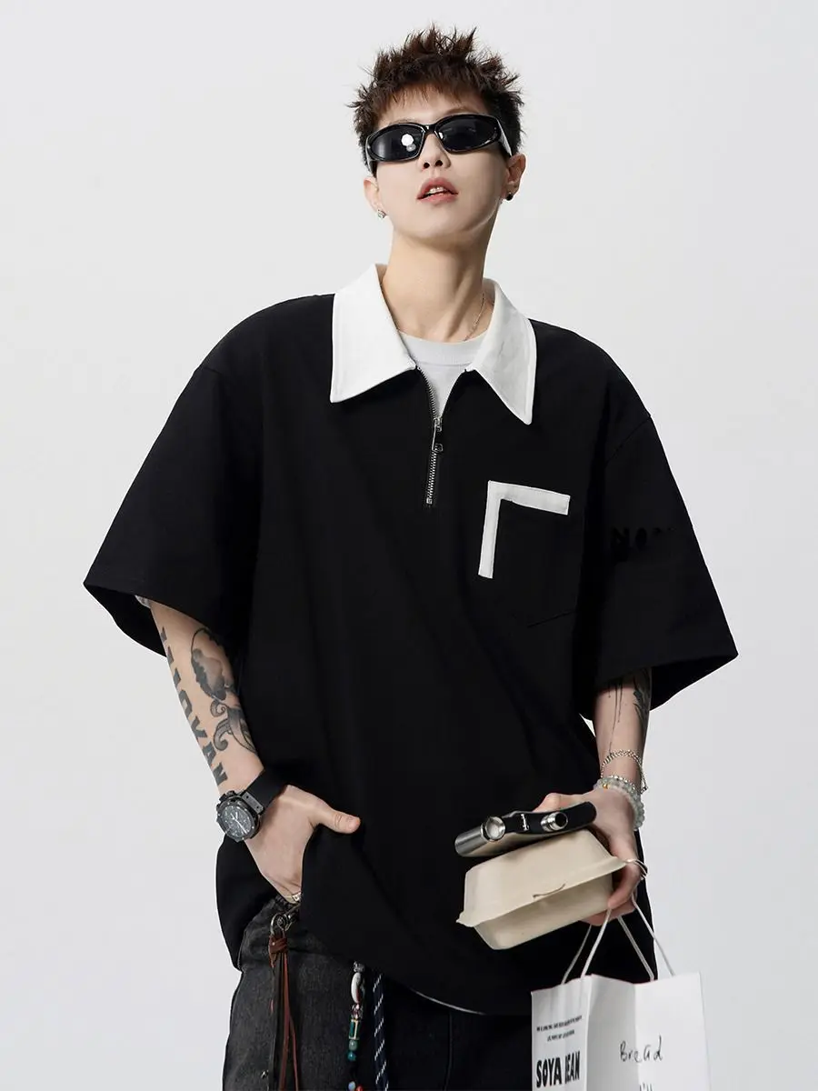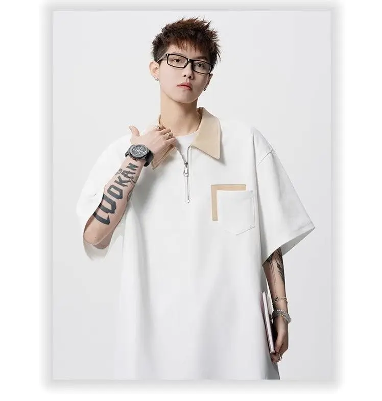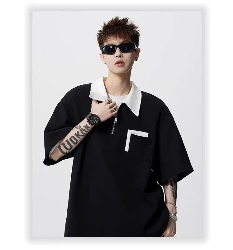 American retro men and women trendy personality polo shirt collar short sleeved summer high street breathable casual T-shirt top