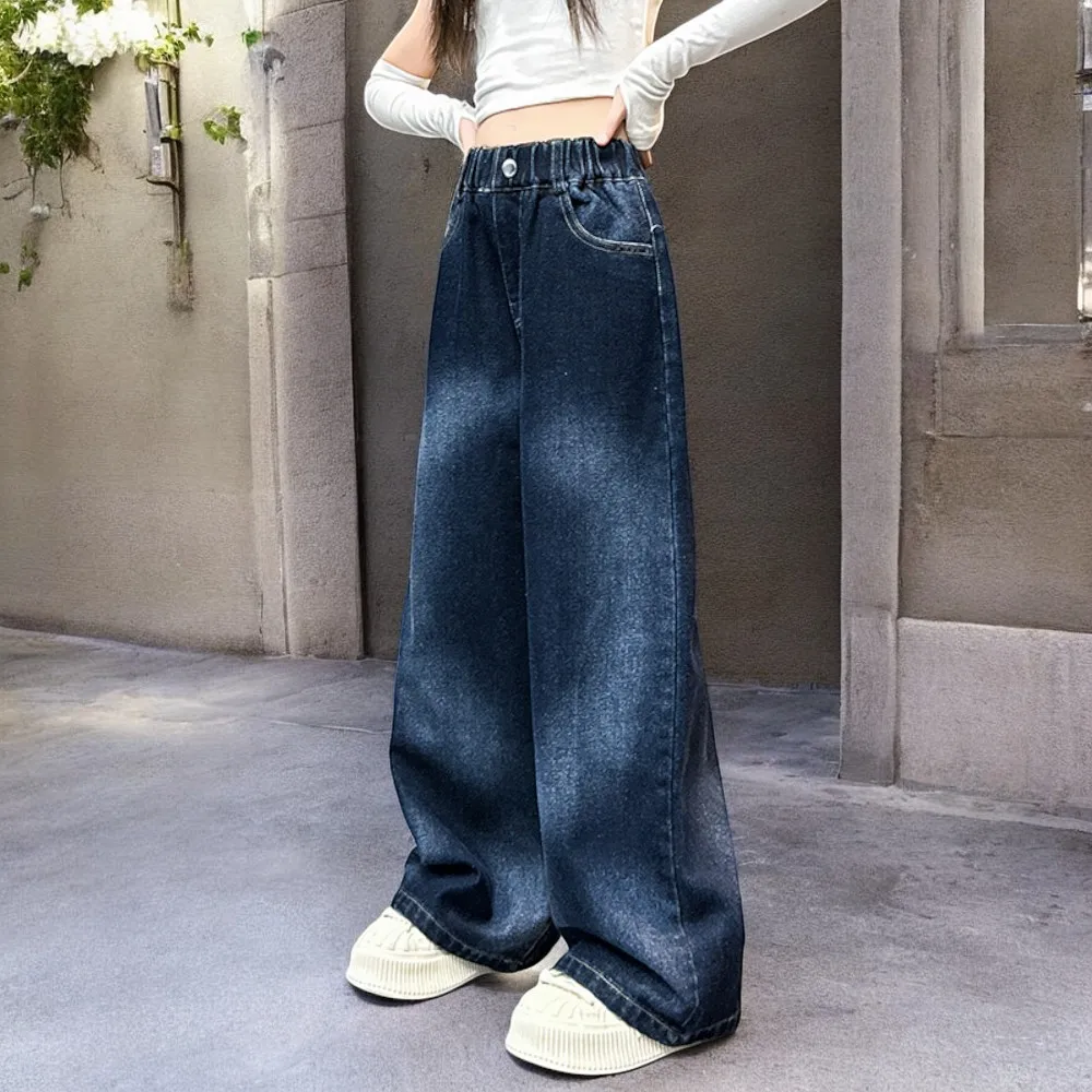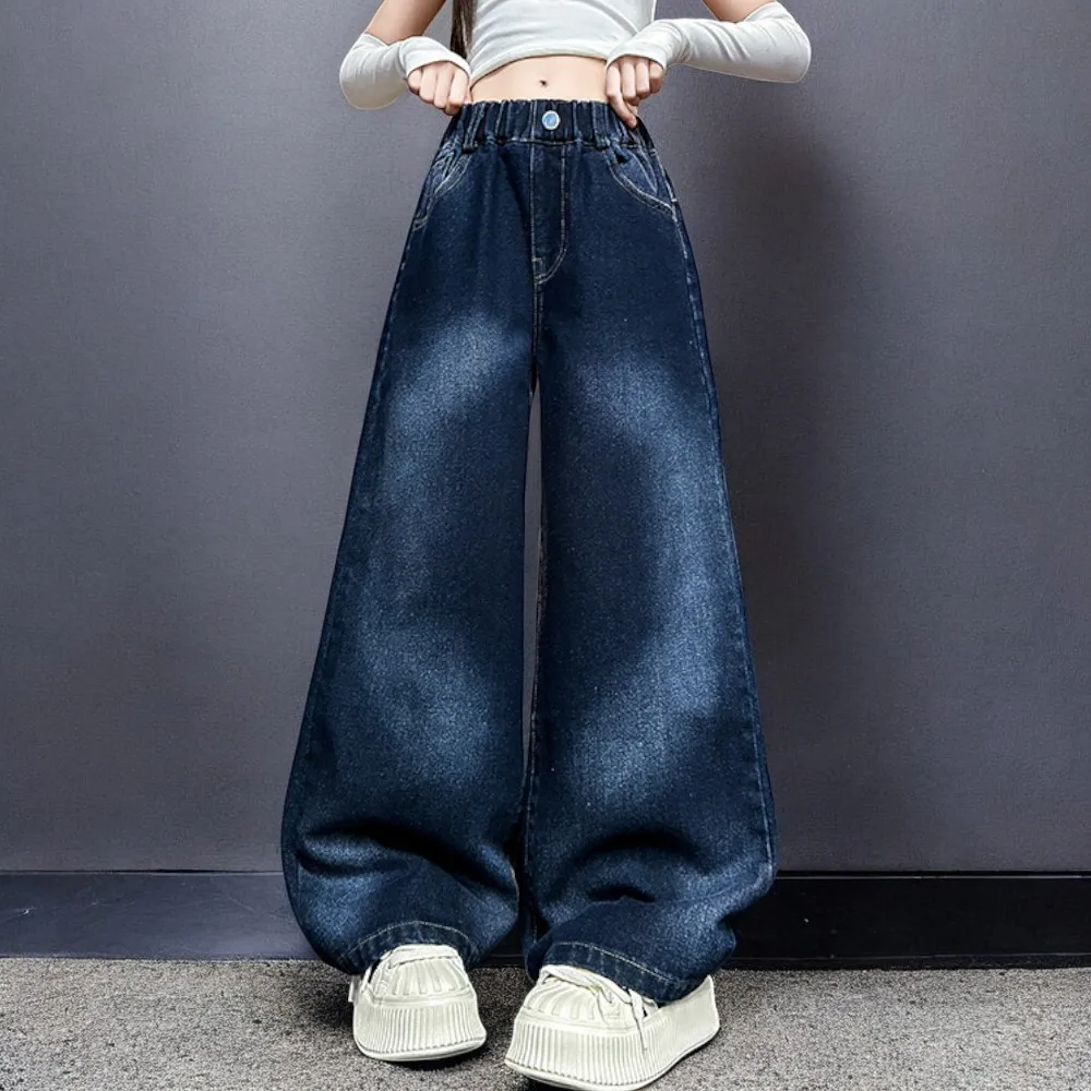 Autumn Kids Cargo Jeans for Girls Loose Pants Children Baggy Trousers School Teenagers Outfits Baby Clothes 5 7 9 10 11 12 Years