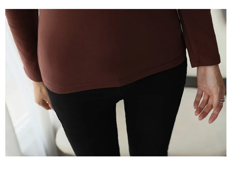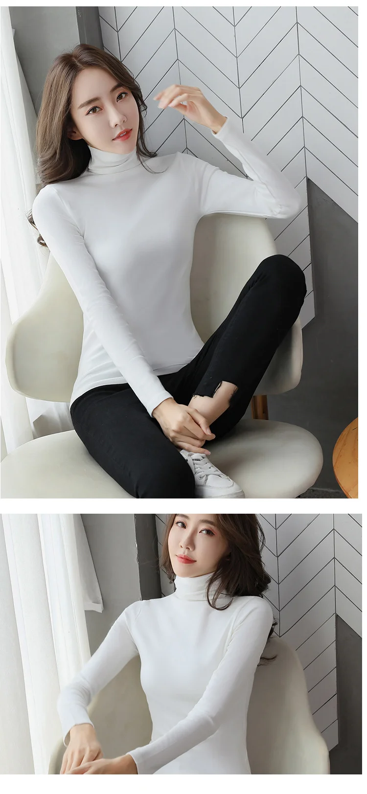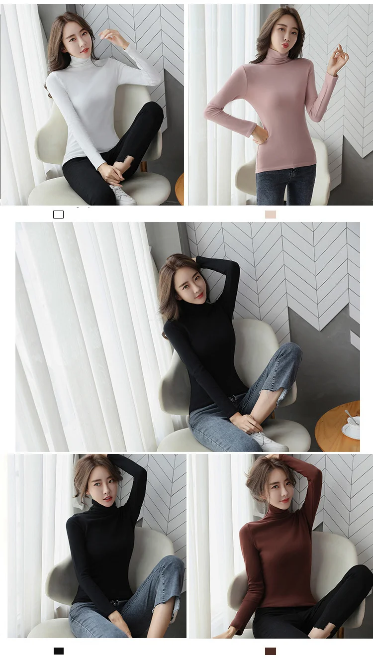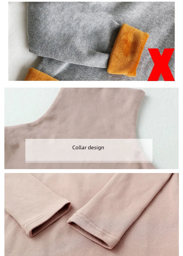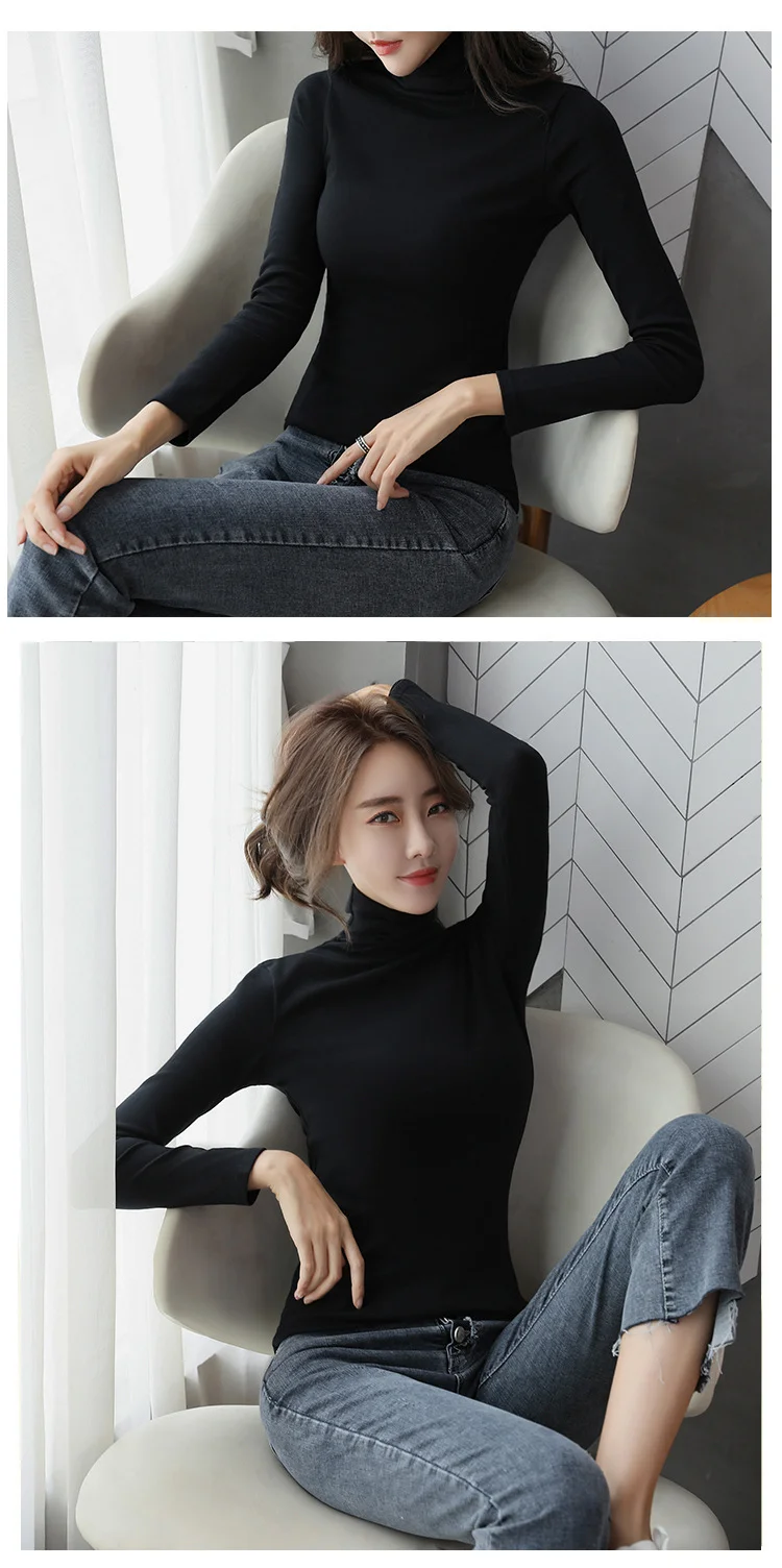 Autumn Women Slim Fit Long Sleeve T-shirt High Collar Fleece Base Shirt Thickened Design Fresh Sweet Style