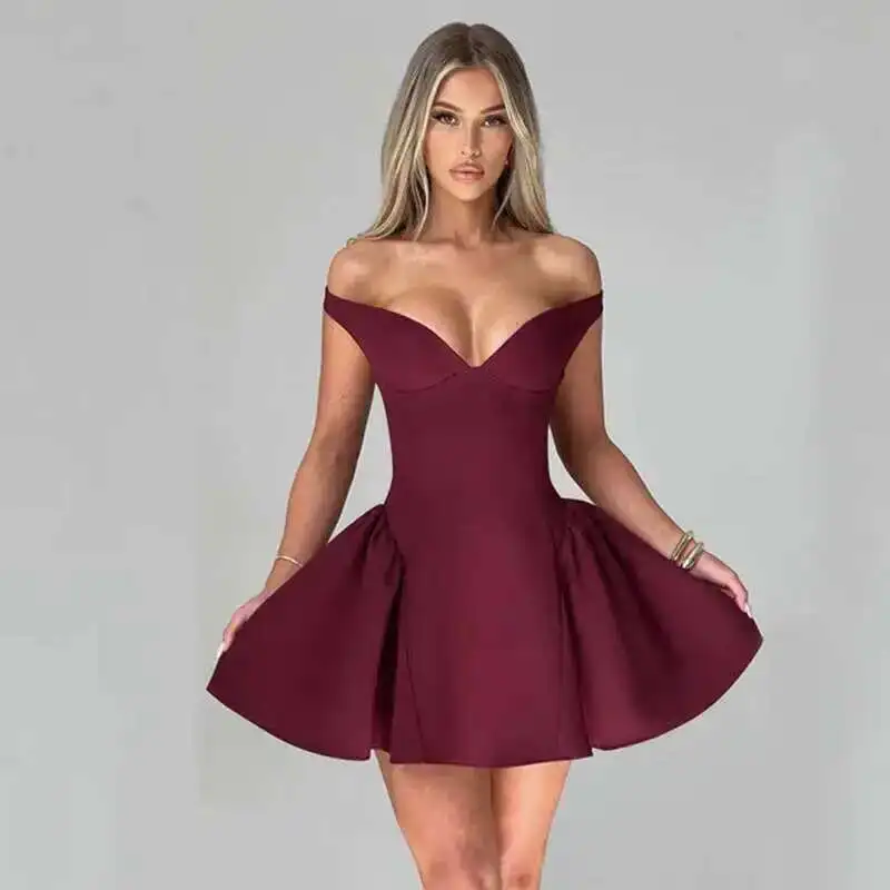 Avrilyaan Deep V Off Shoulder Backless Sexy A-line Dress Women Elegant Party Dress Slash Neck Bodycon Mini Summer Dress Vestidos