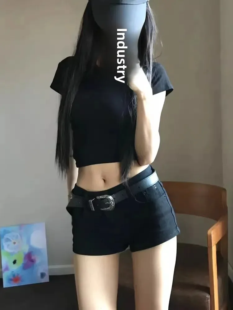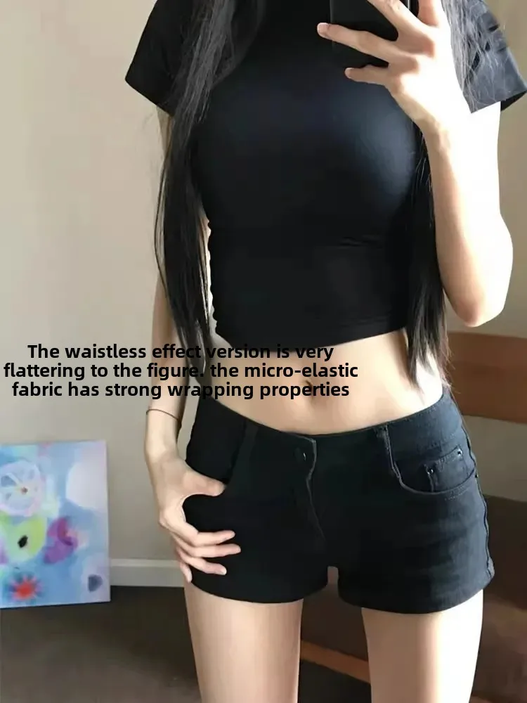 Black Low Waist Denim Super Short Tight Women's Summer Hot Pants American Spicy Girl Elastic Shorts Mini Length Slimming Trendy