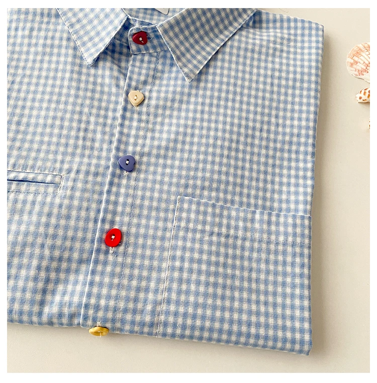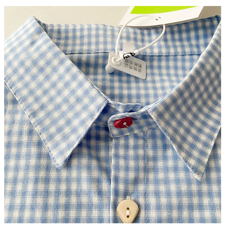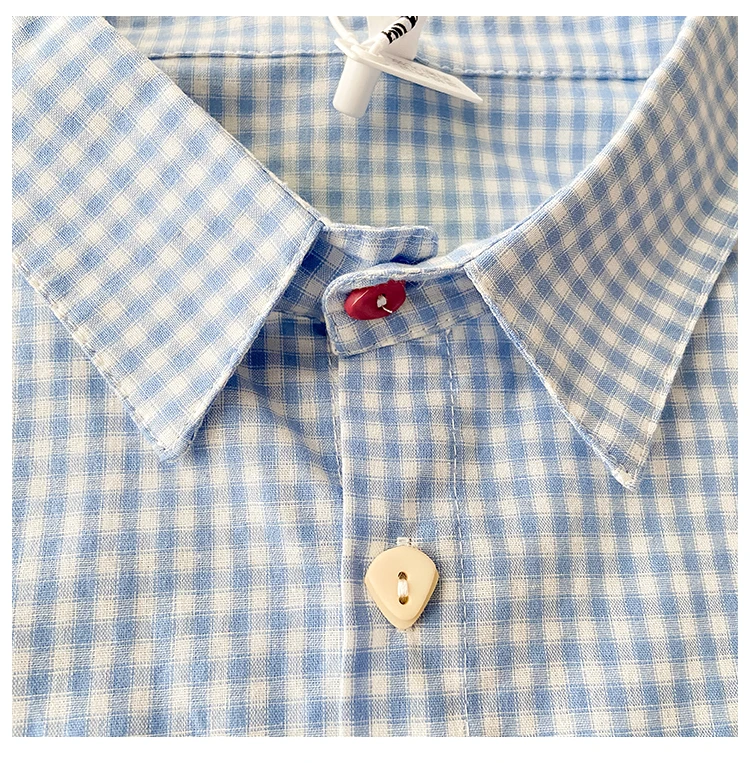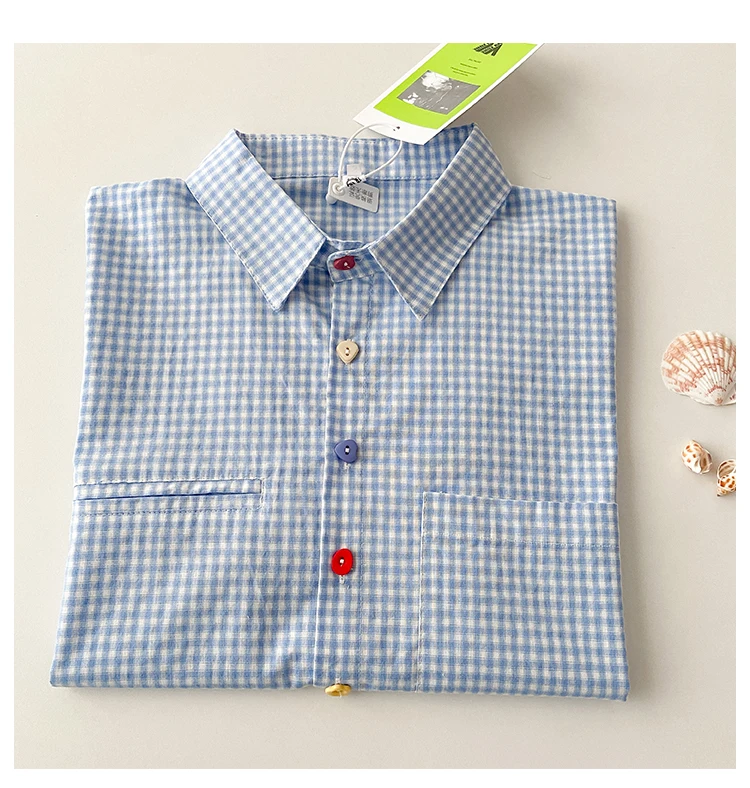 Blue Thin ort Sve Plaid irt Women Summer New Korean Sle Inner Wear Loose Top Outerwear Collar Multi Bu...