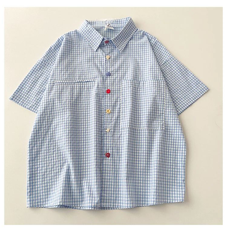This blue checkered shirt is a new summer style, perfect for those who want to stay trendy during the hot season.