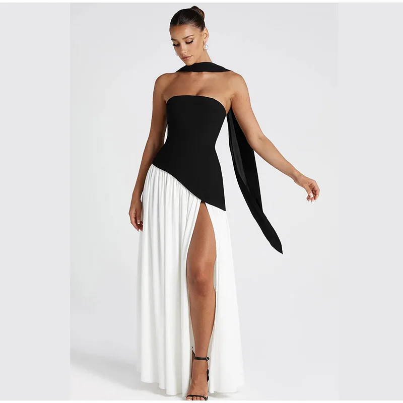 Butter Yellow Scarf Neck Split Long Dress Women Elegant Strapless Slim Fit High Waist Vestidos 2025 Lady Evening Party Gowns New