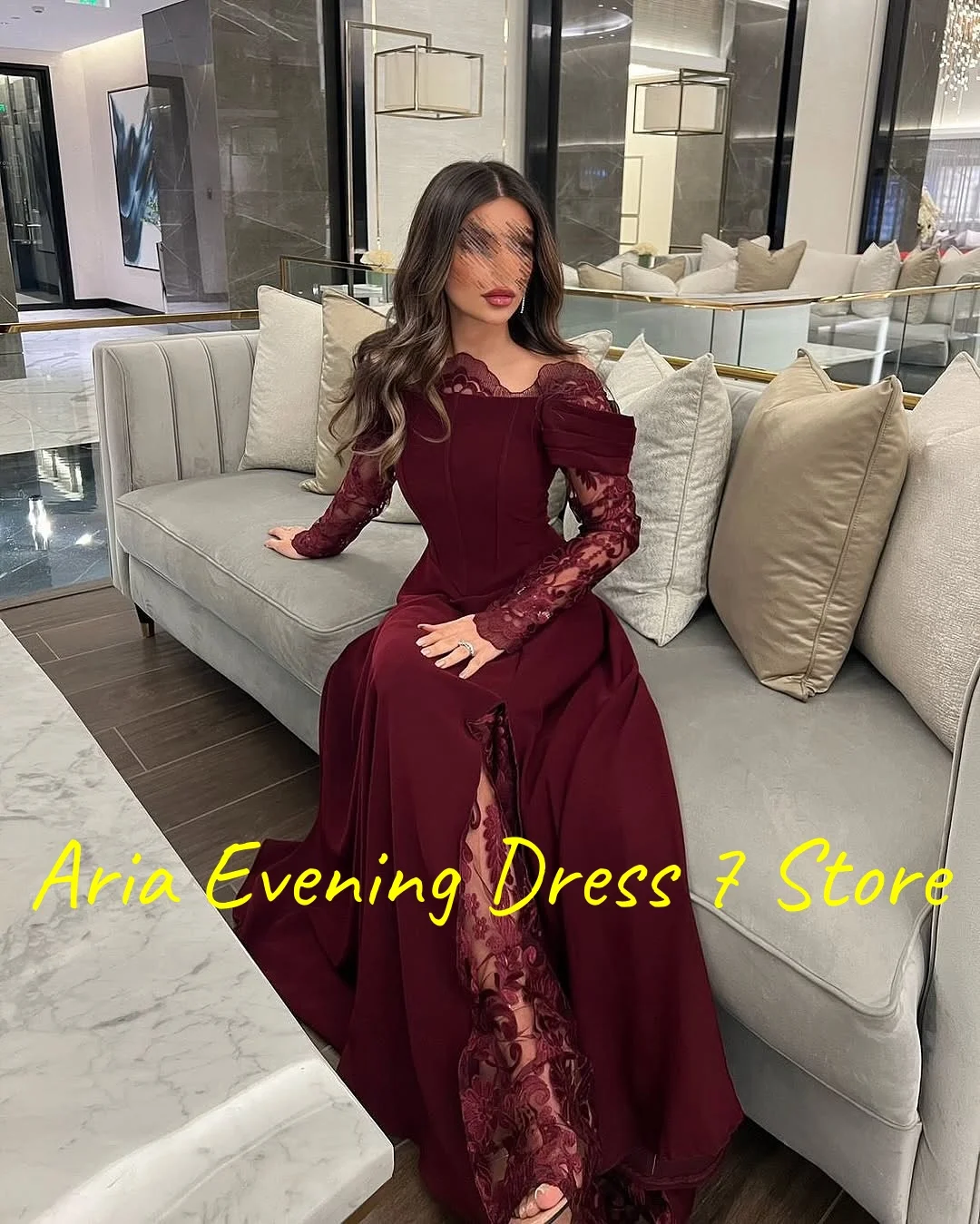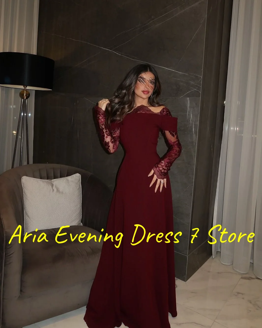 Customized Exquisite Jersey Off the Shoulder Lace Evening Dresses Delicate Long Sleeves Party Dress Custom Made Cocktail Dress
