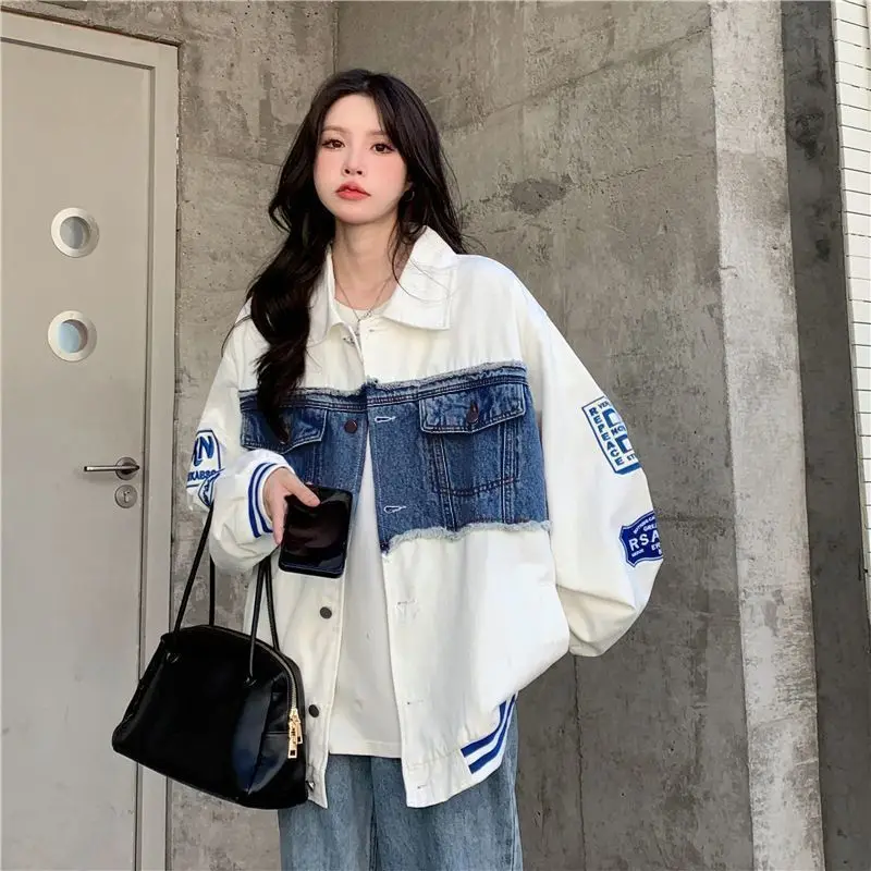 Denim Jacket Embroidered Baseball Uniforms Bomber Jackets Streetwear Harajuku Y2k Tops Trench Coats Hip Hop Long Sleeve Coats