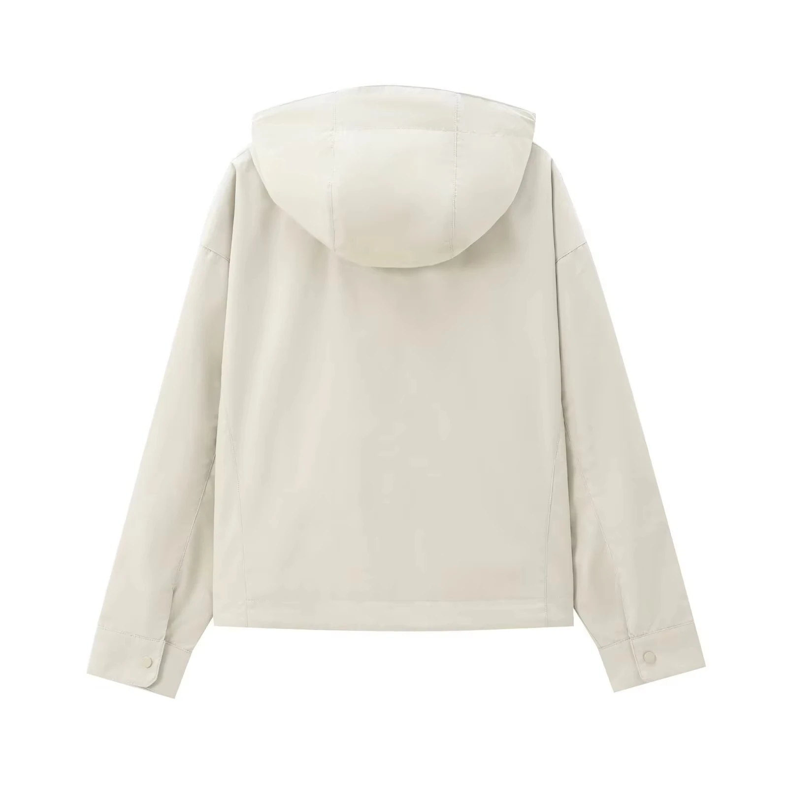 DUOPERI Women Fashion Spring Autumn Solid Jacket with Hat Long Sleeves Female Chic Lady Casual Outfits
