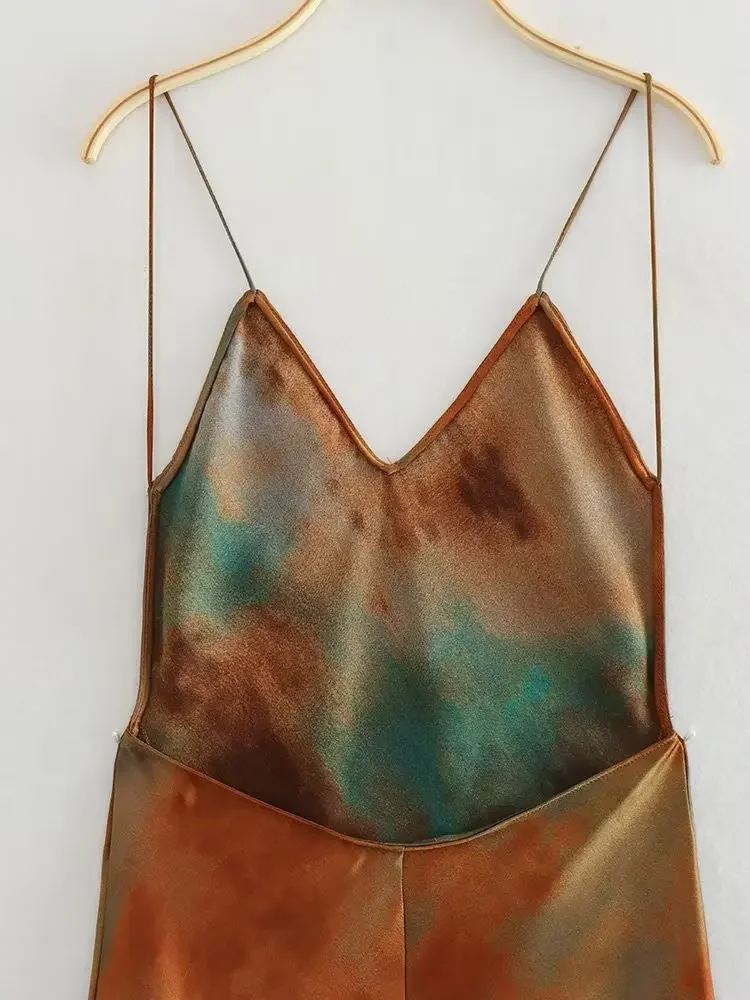 Elegant Sexy Long Dress New 2023 Design V-neck Open Back Rainbow Printing Tank Dress For Women Cross-border European Style
