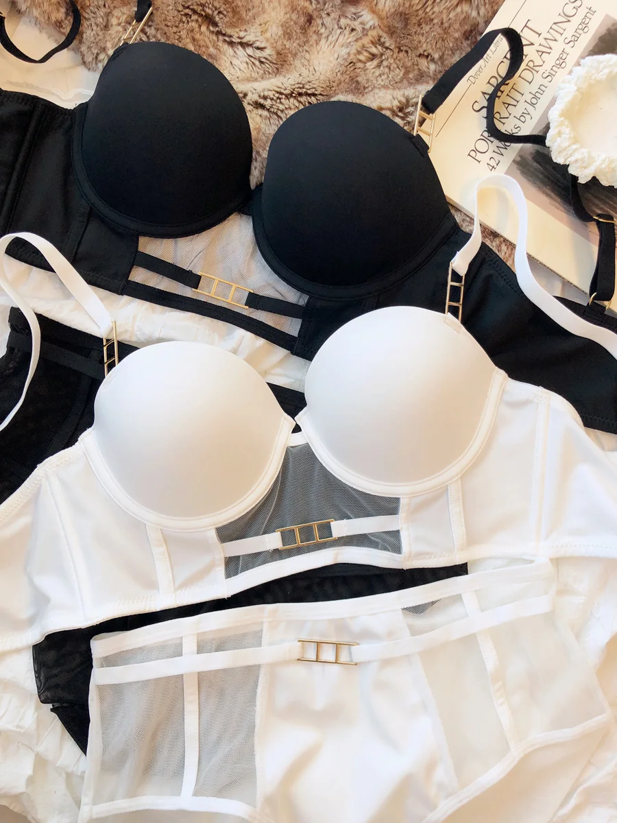 Europe Women Underwear Set Sexy Lace Hollow Breathable Widen Buckle Lingerie Underwire Push Up Bra and Panties Rose Intimates