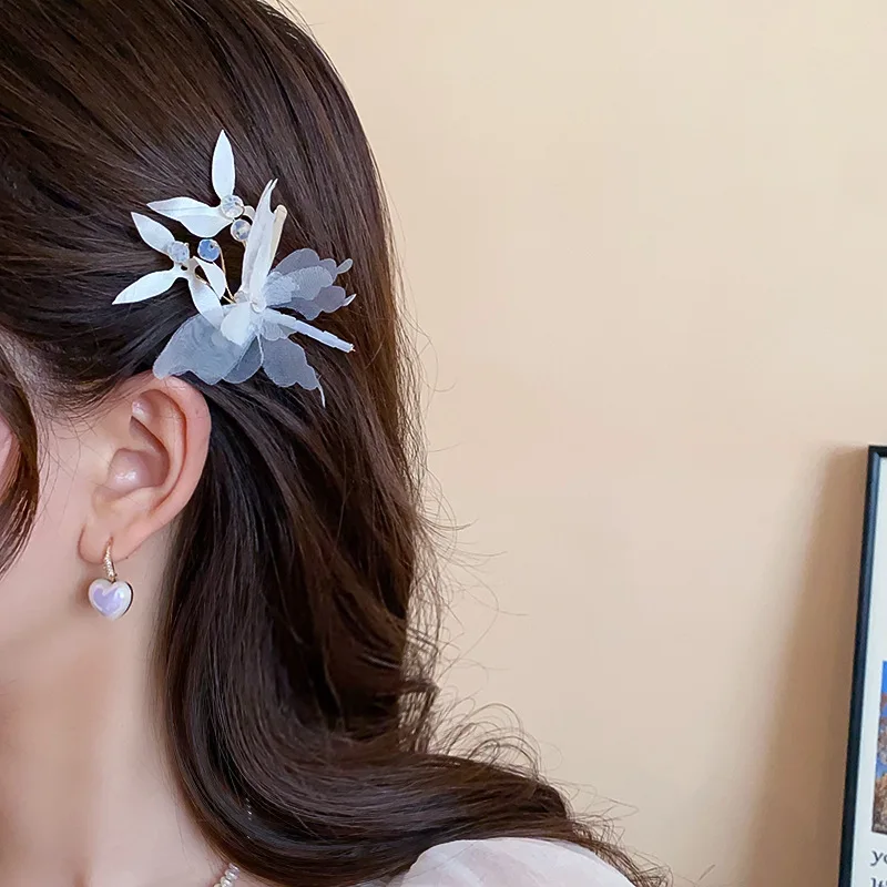 Fairy Dark Blue Gradient Butterfly Shiny Duckbill Hair Clips for Women Pastoral New Premium Dreamy Fashion Luxury Accessories