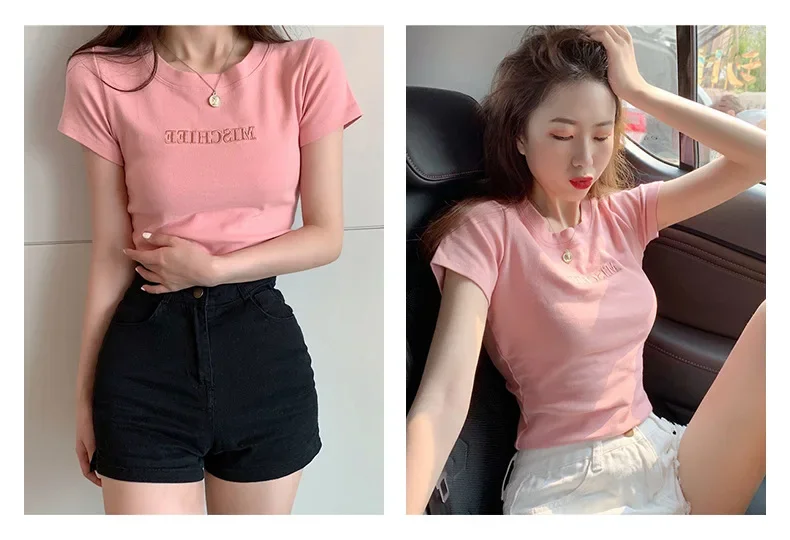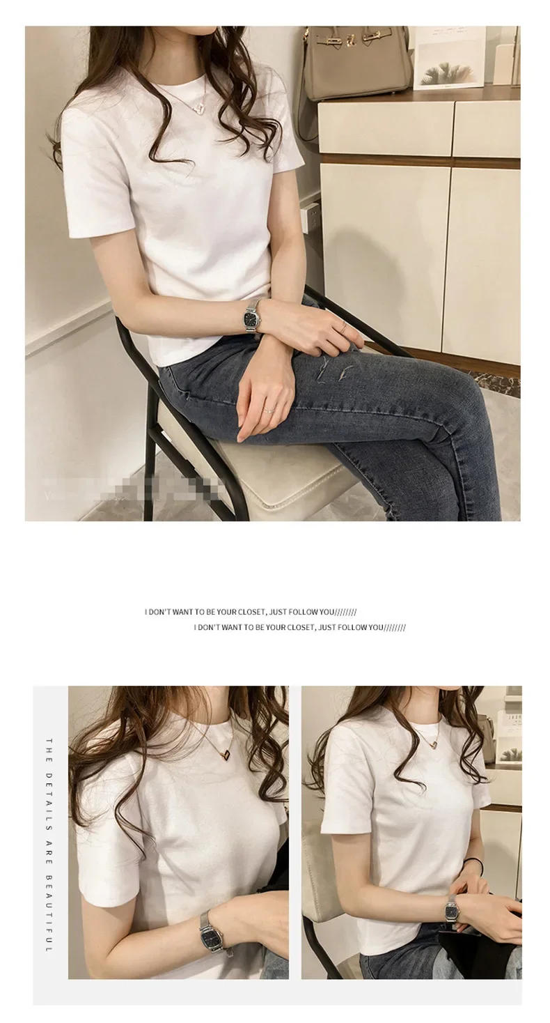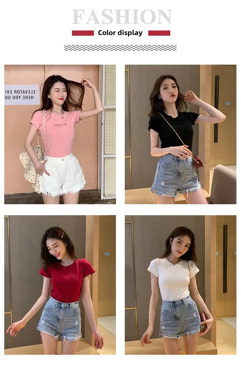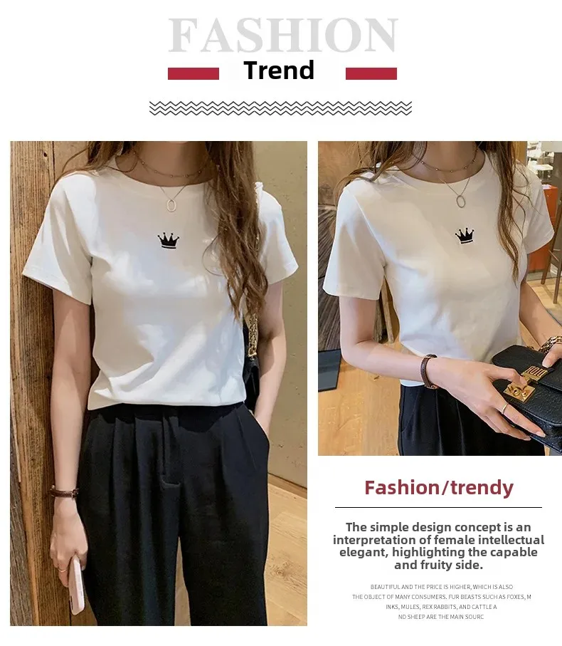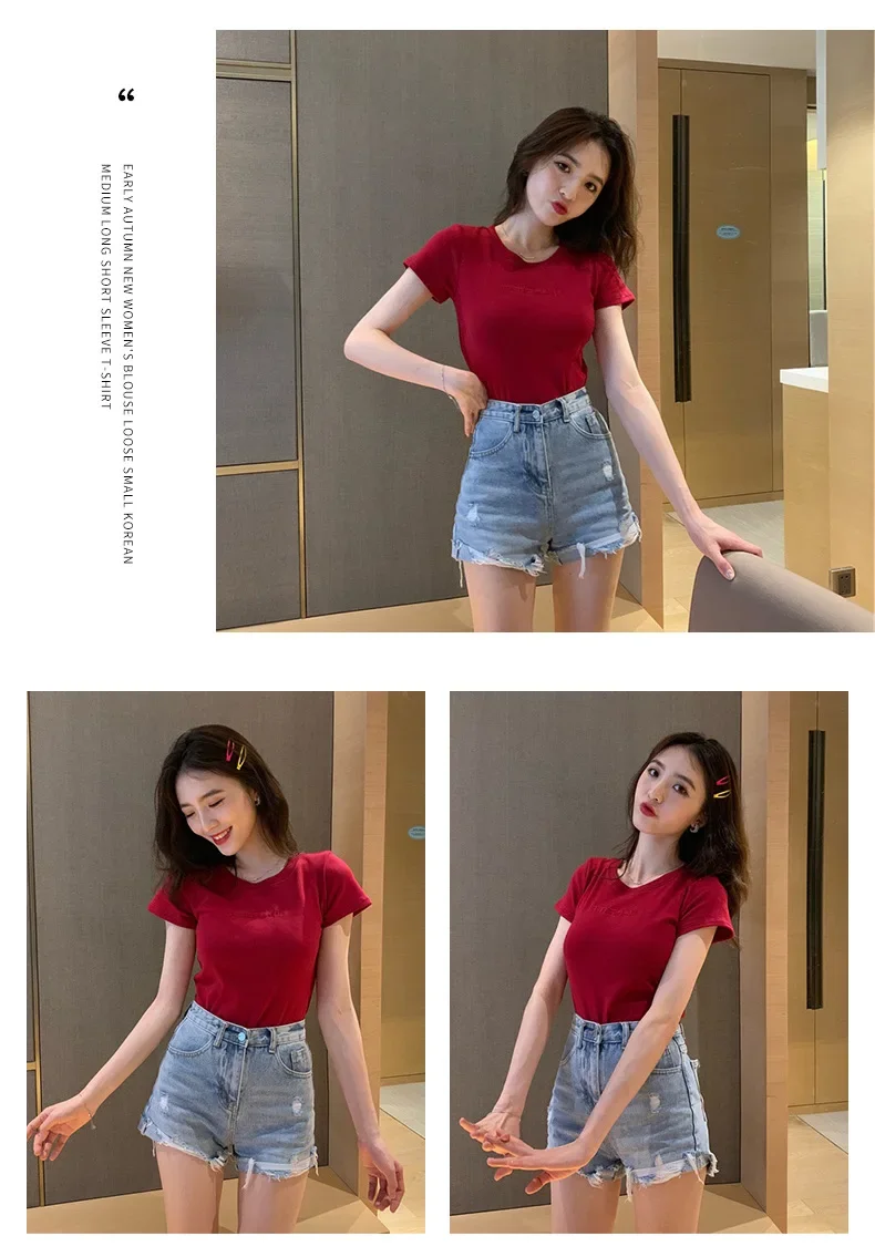 Fashionable Letter Embroidery Short Sleeve T-Shirt Women's Loose-Fit Summer New Style Slimming Base Layer Korean Version