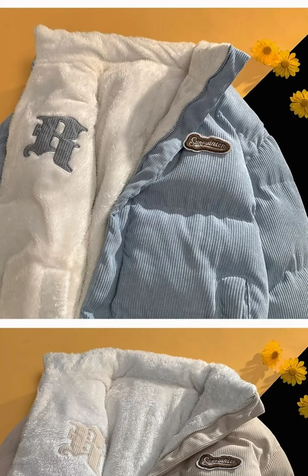 Fog Blue Cotton-padded Coat Men's Winter Thickened Hong Kong Style Corduroy Cotton Jacket Design Sensibility Niche 2023 Workwear