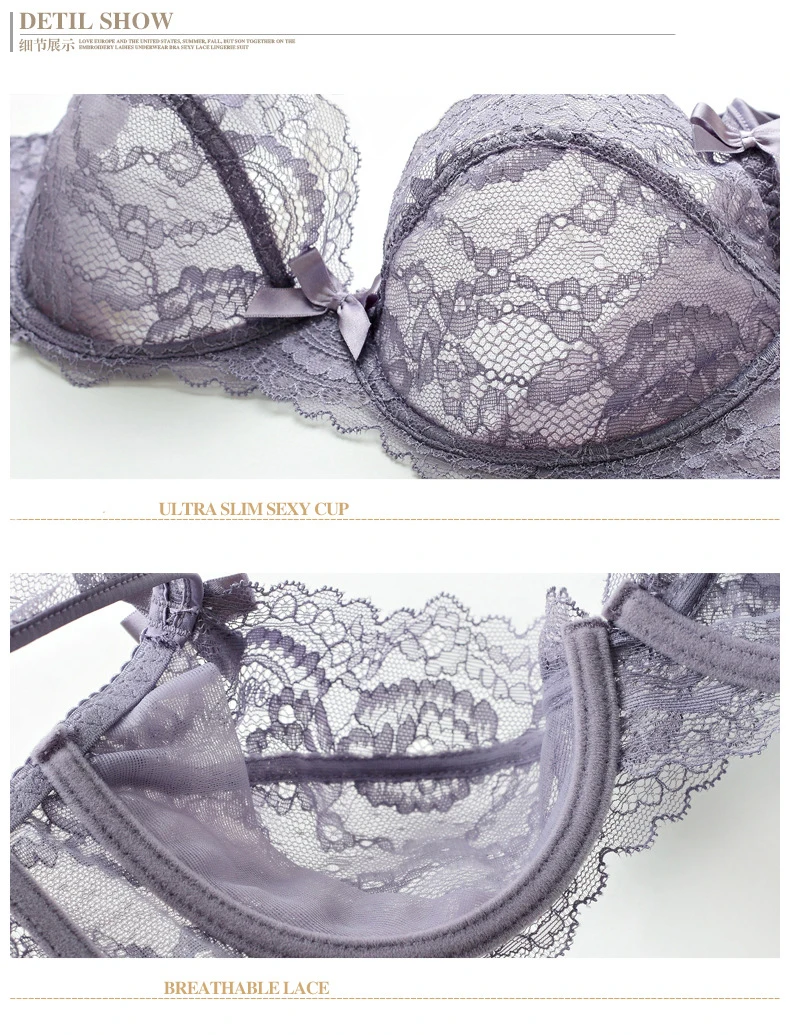 French Sexy Ultra Thin Bra Set Women Red Temptation Underwear Lace Embroidery Breathable Lingerie Romantic Bow Decorative Bras