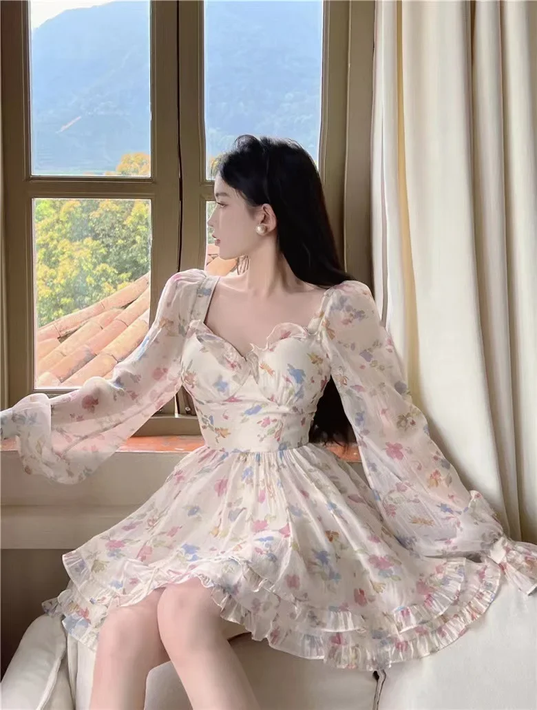 French Style Gentle Flower Print Dress Summer 2024 Slimming Perfect Beauty Pure Desire Sweet First Love Princess Dress For Women