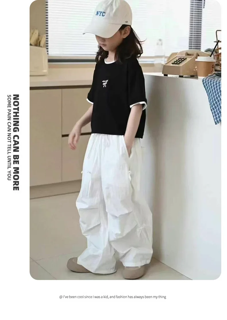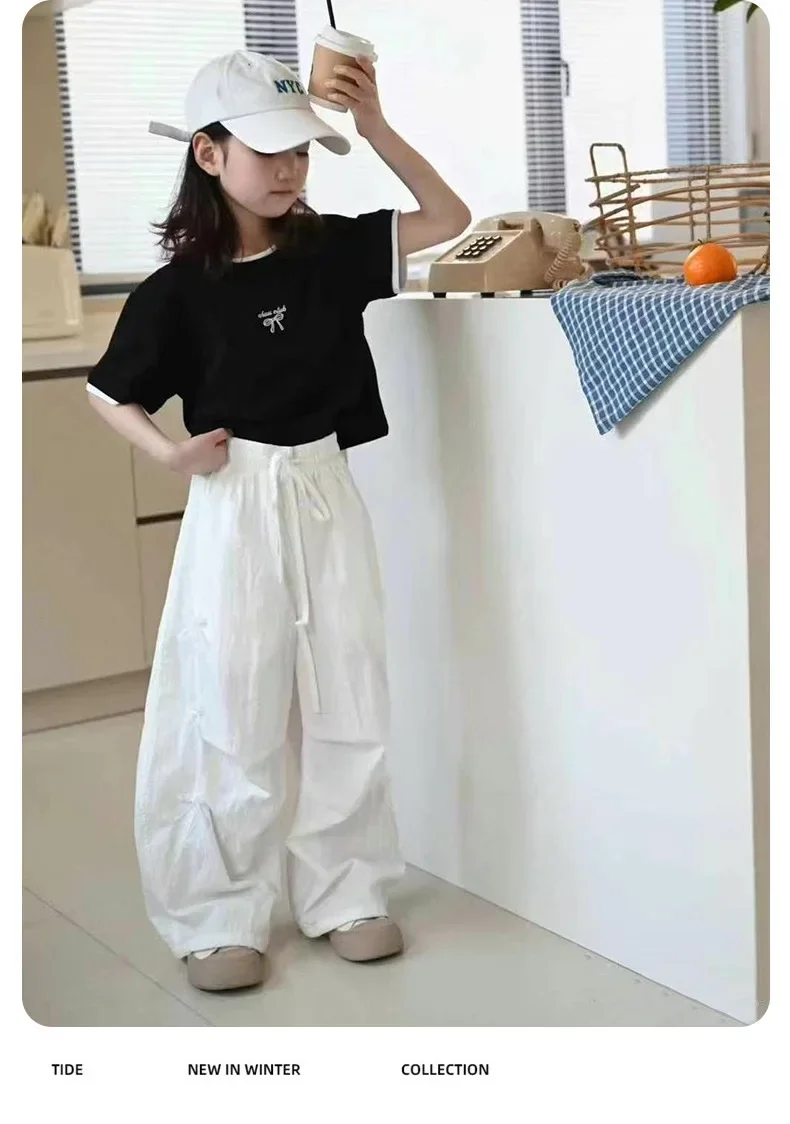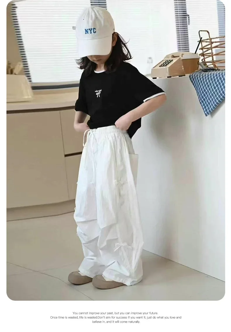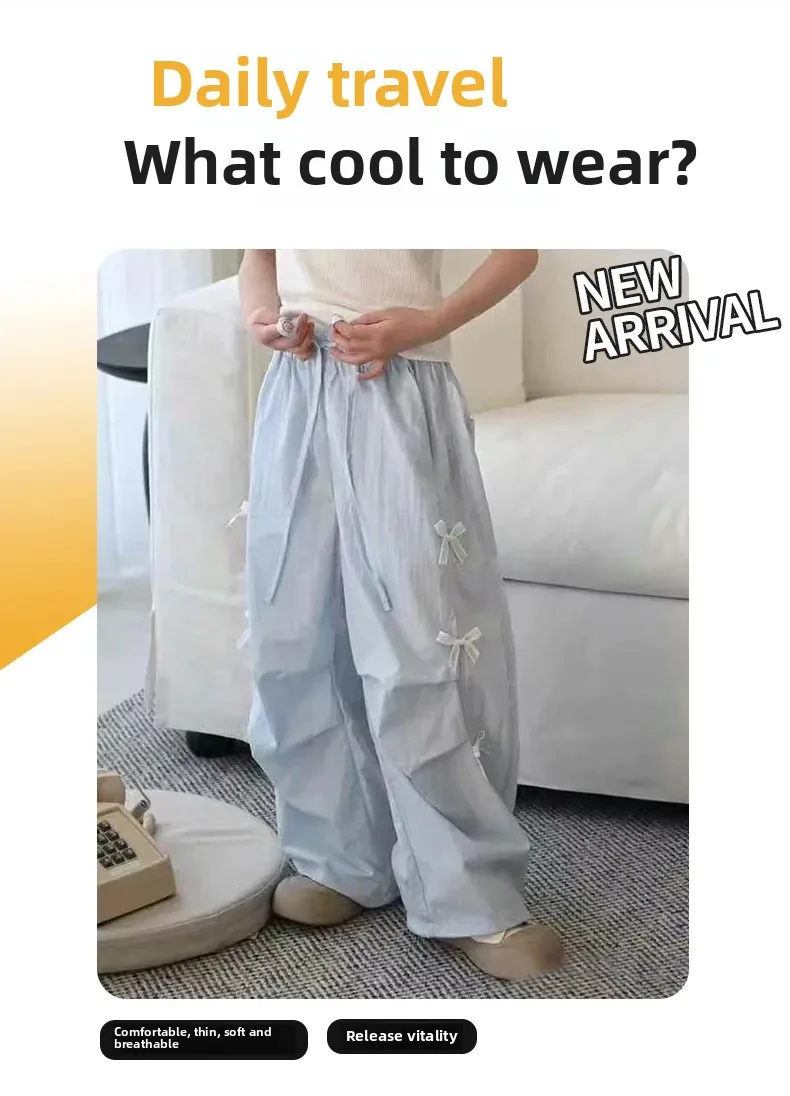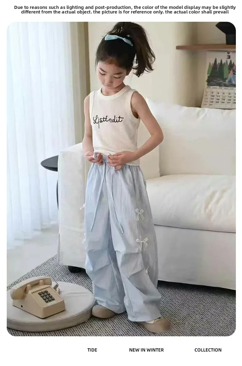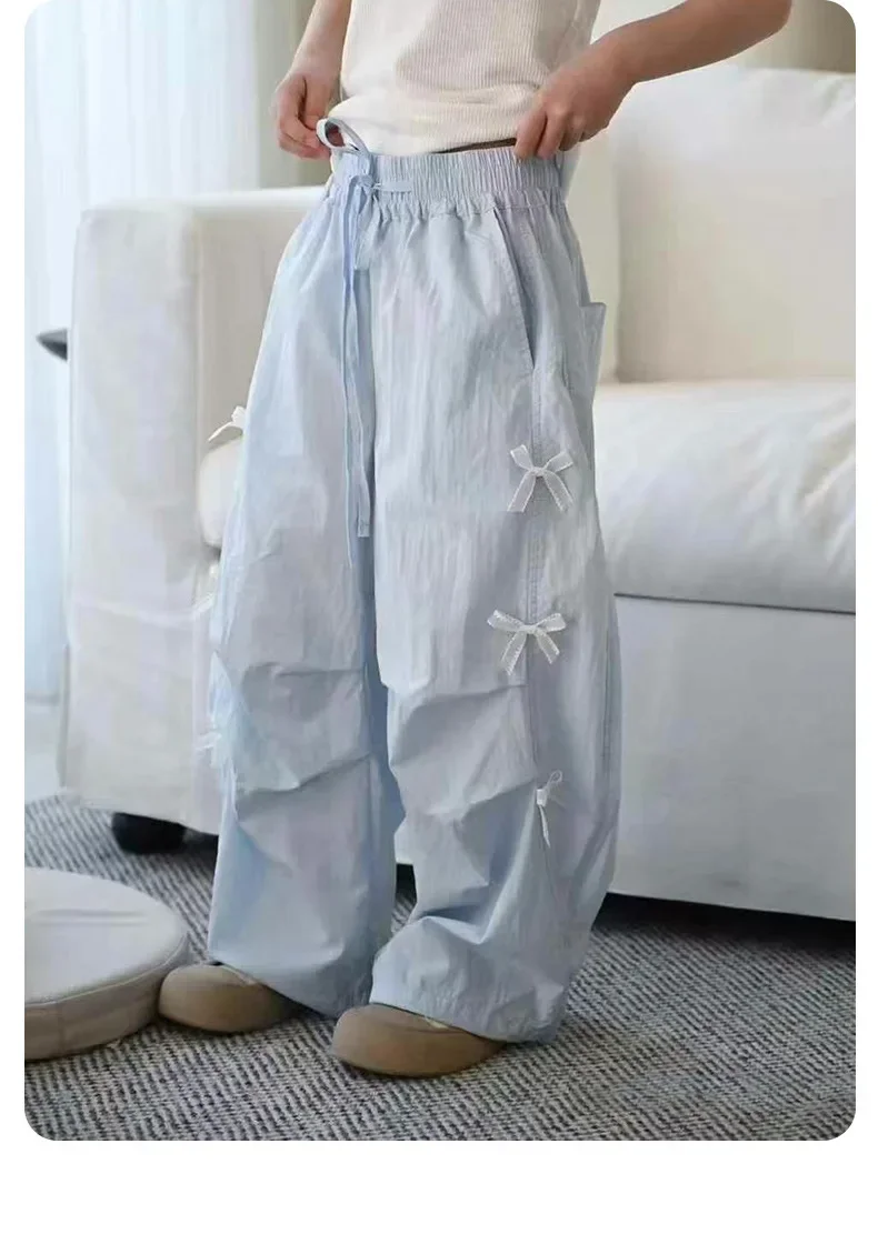 Girls Mosquito-Resistant Pants Summer New Style Dopaamine Color Butterfly Knot Lightweight Paratrooper Pants Thin Long Trousers
