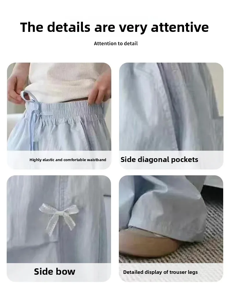 • Dopamine Color Bow Design : The vibrant dopamine color paired with a cute bow adds a touch of fun and style to these lightweight paratrooper pants.