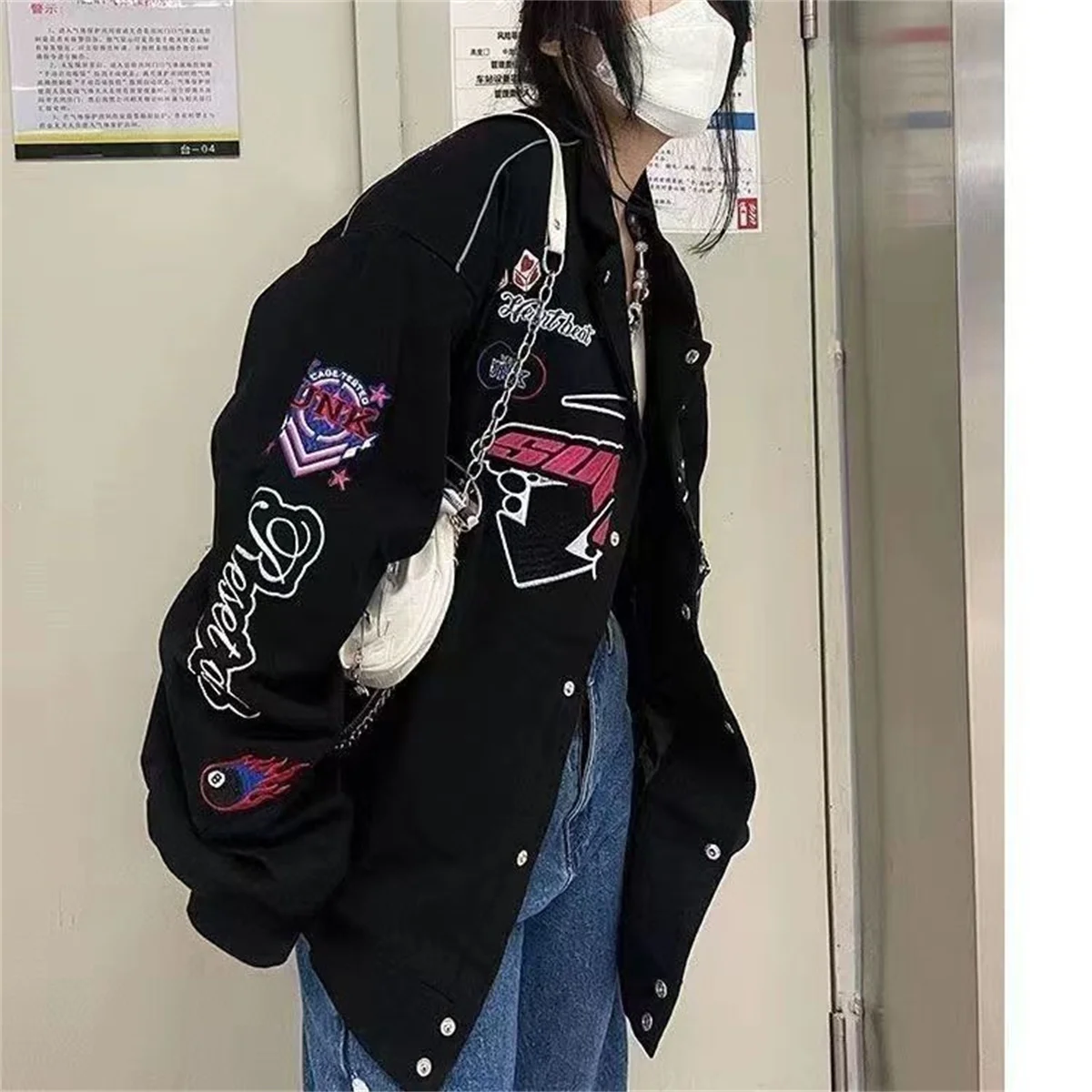 Gothic Japan Hip Hop Hoodie Sweatshirt Oversize Women Spring Autumn Harajuku Punk Hoodies Tops Cool Baseball Uniform Girl