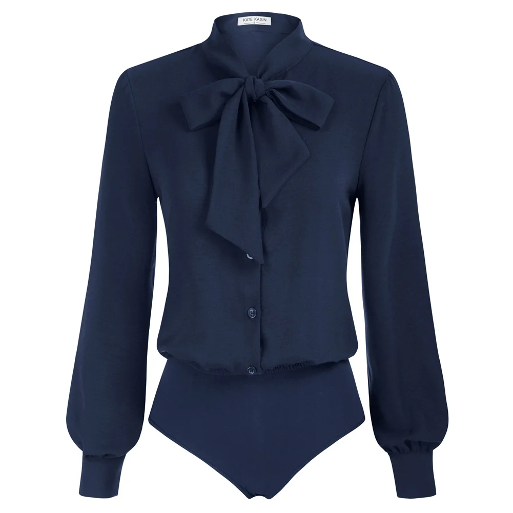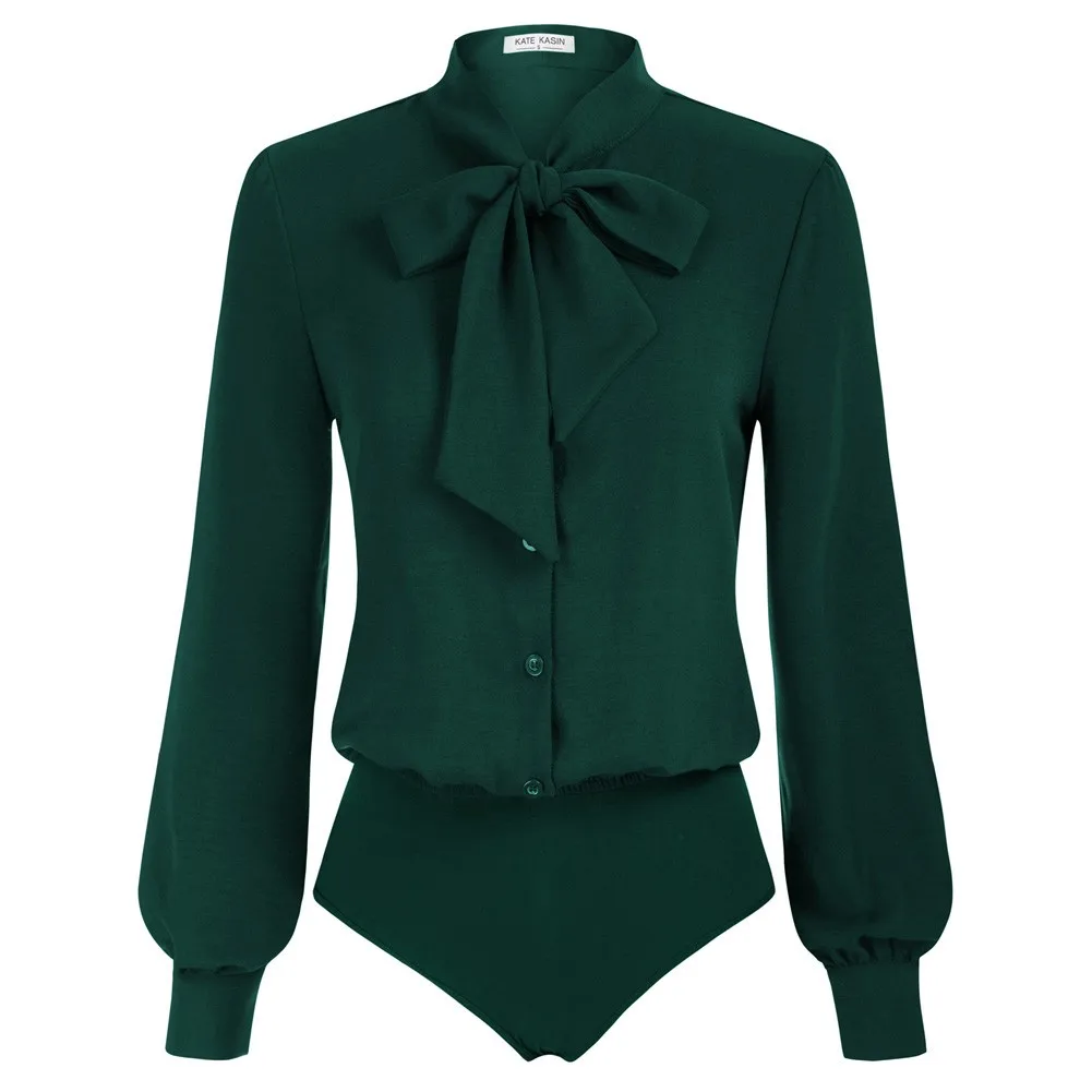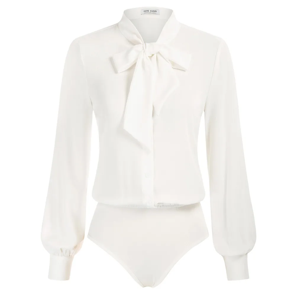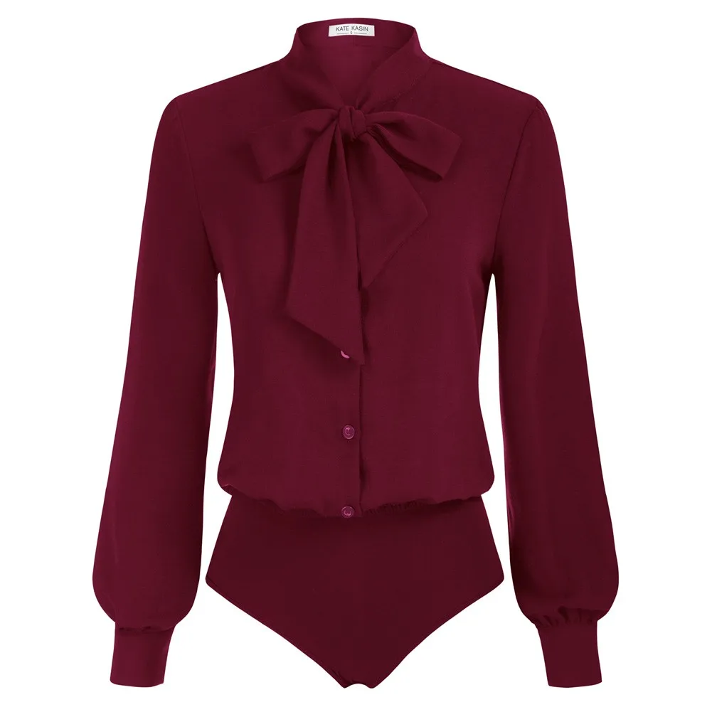 KK Women Bow-Knot Bodysuit Long Sleeve Elastic Waist Shirt Teddy Autumn And Winter Solid Streetwear Office Lady Elegant Jumpsuit