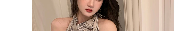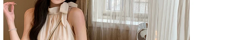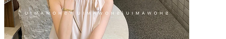 Korean Sle Pure Desire oulder Bared Chiffon Top Women's Summer Ne Hanging Belted Svel round Ne Dr