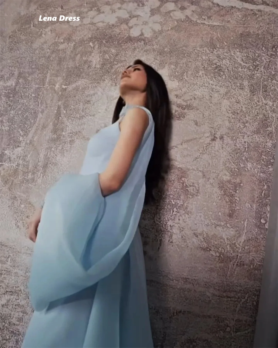 Lena Sky Blue Prom Dresses 2025 Luxury Women's Elegant Party Dress Woman 2025 Chiffon Custom Made Shawl Ball Gown Dress Evening