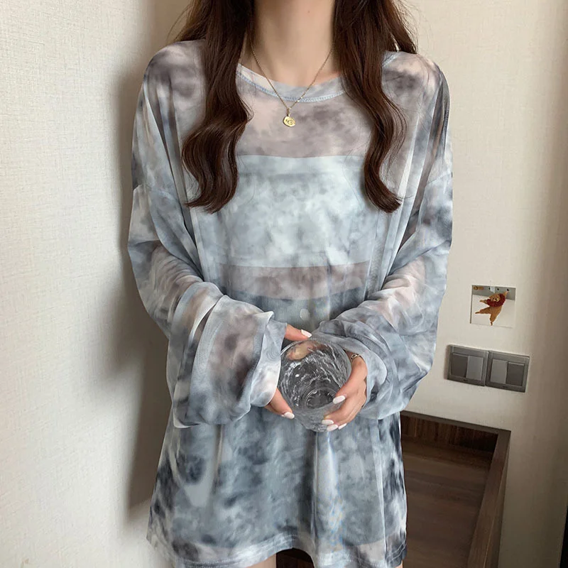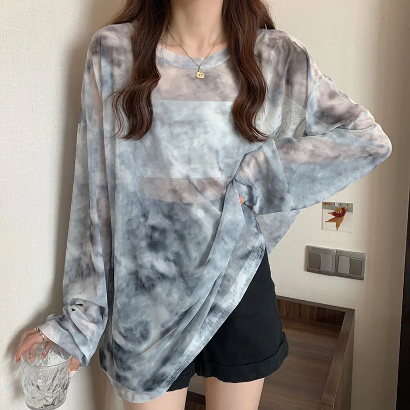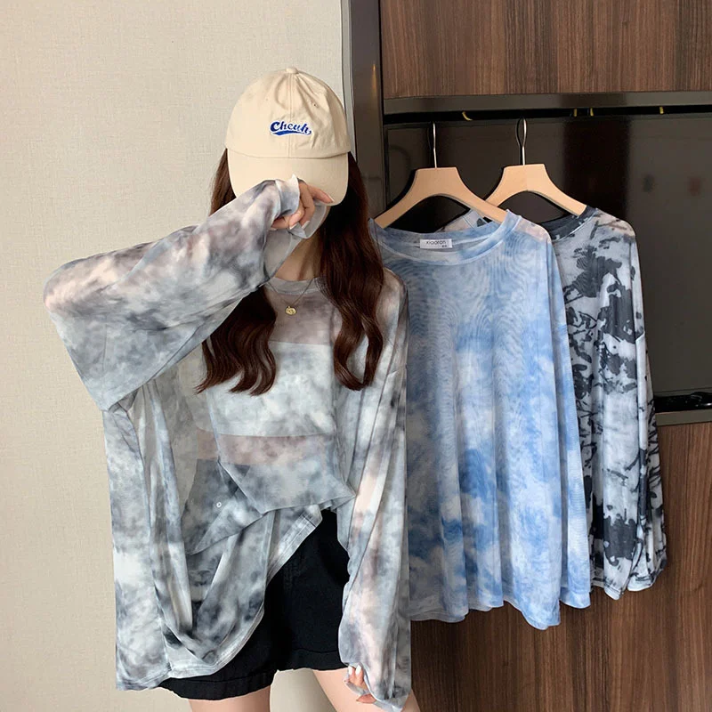Loose T-shirt Women Mesh Sun Protection Clothing Wide Sleeve Tank Top Casual Style Comfortable Breathable Underwear