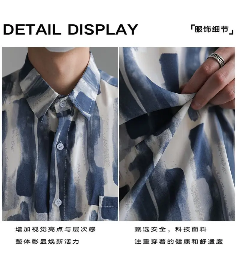 Men's and women summer trend personality simple graffiti lapel shirt couple loose retro Harajuku casual short sleeved top y2k