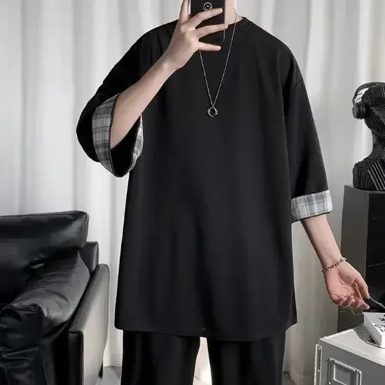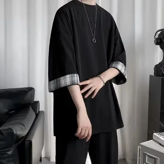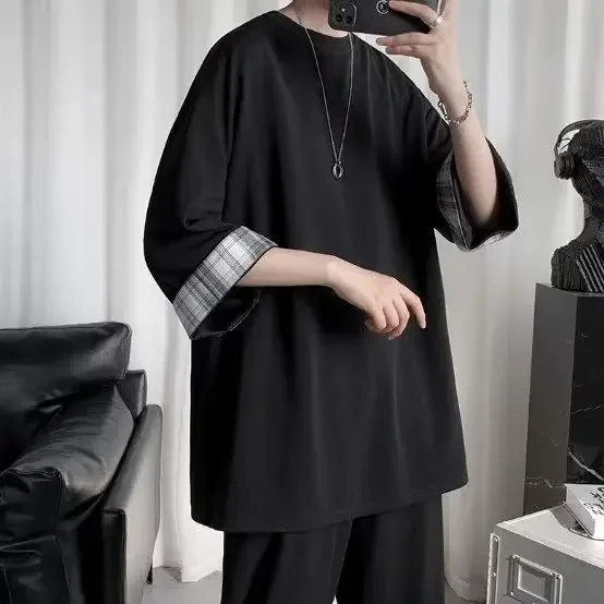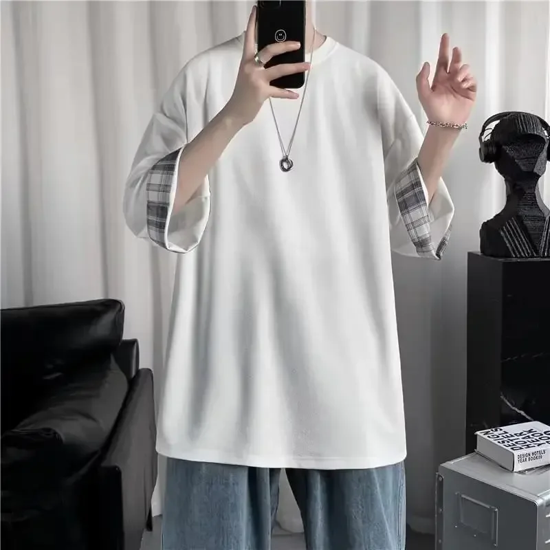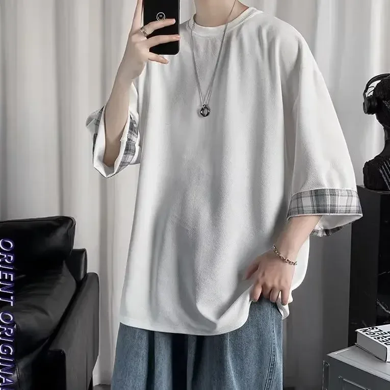 New Fashionable Summer Korean Style Short Sleeve T-shirt For Men Loose Fit Trendy Two-piece Illusion Half Sleeve Hong Kong Style