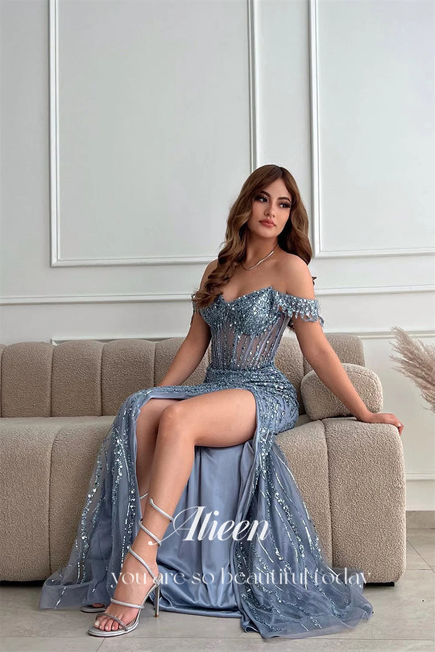 Off the Shoulders Mermaid Gray Blue Beads Dresses for Dancing Parties High Quality Luxury Dress customized Women Elegant Party