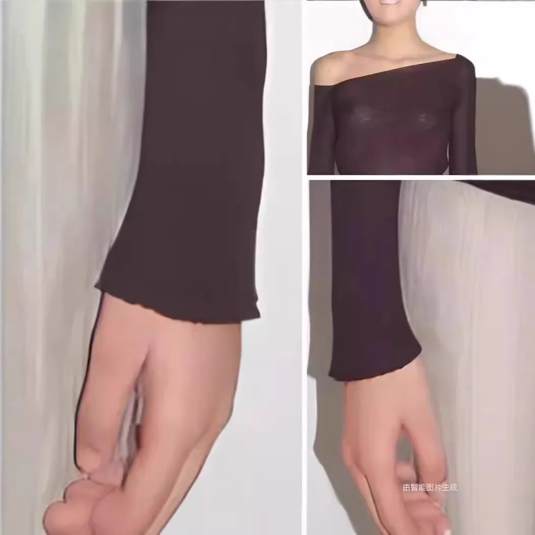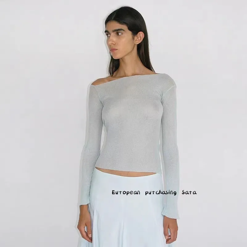 pa wl one-shoulder long-sleeved top, female wool blend off-the-shoulder base shirt, cutout backless knitted sweater