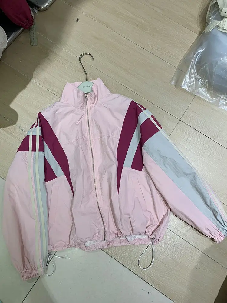 Patchwork Stand Collar High Street Y2k Bomber Outerwear Contrast Color Casual Loose Zipper Summer Jackets Women Baseball Coats