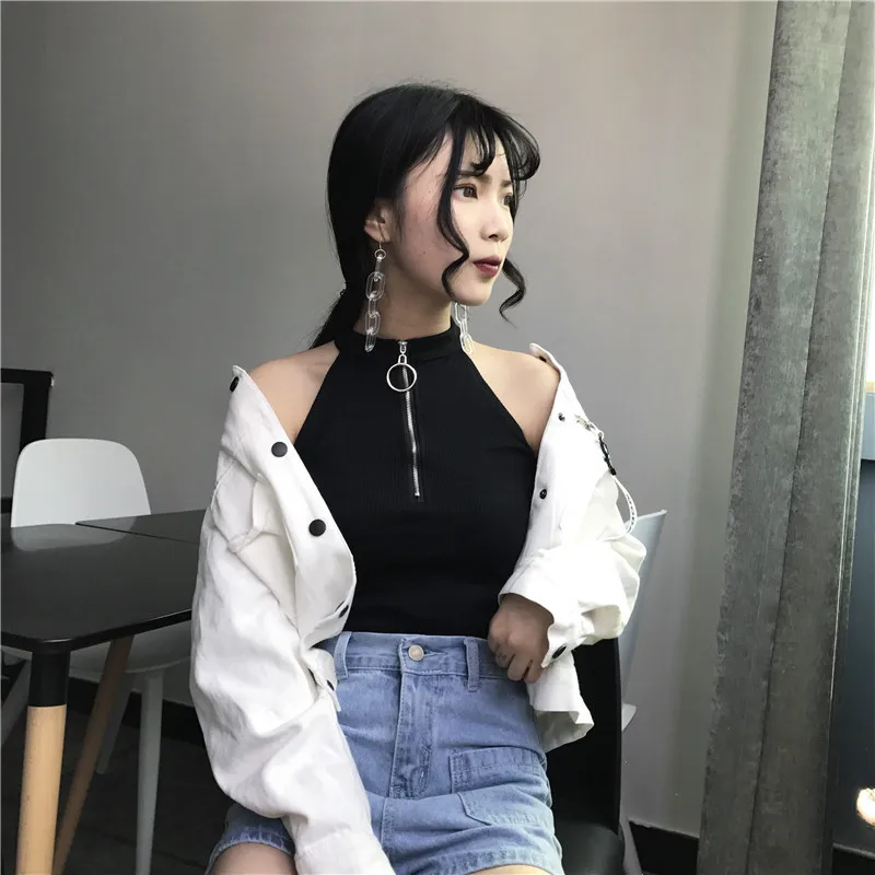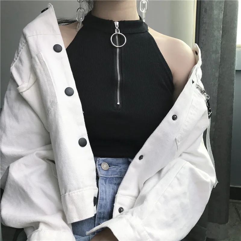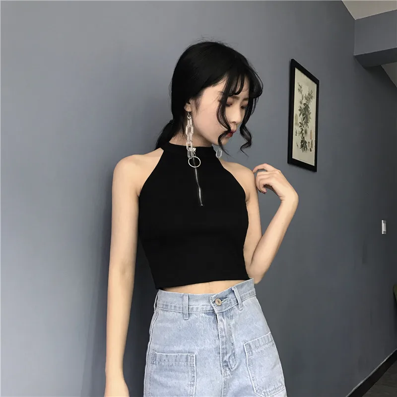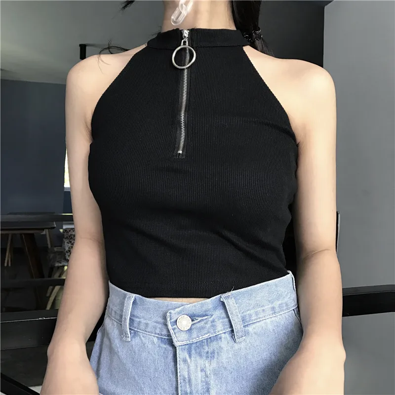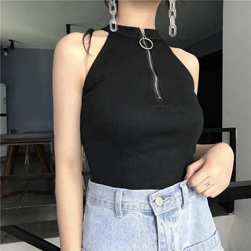 Retro Zipper Crop Tops Women Short Knitted Camisole Sleeveless Leisure Tank Top Camis Summer 2022 New