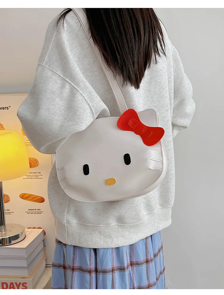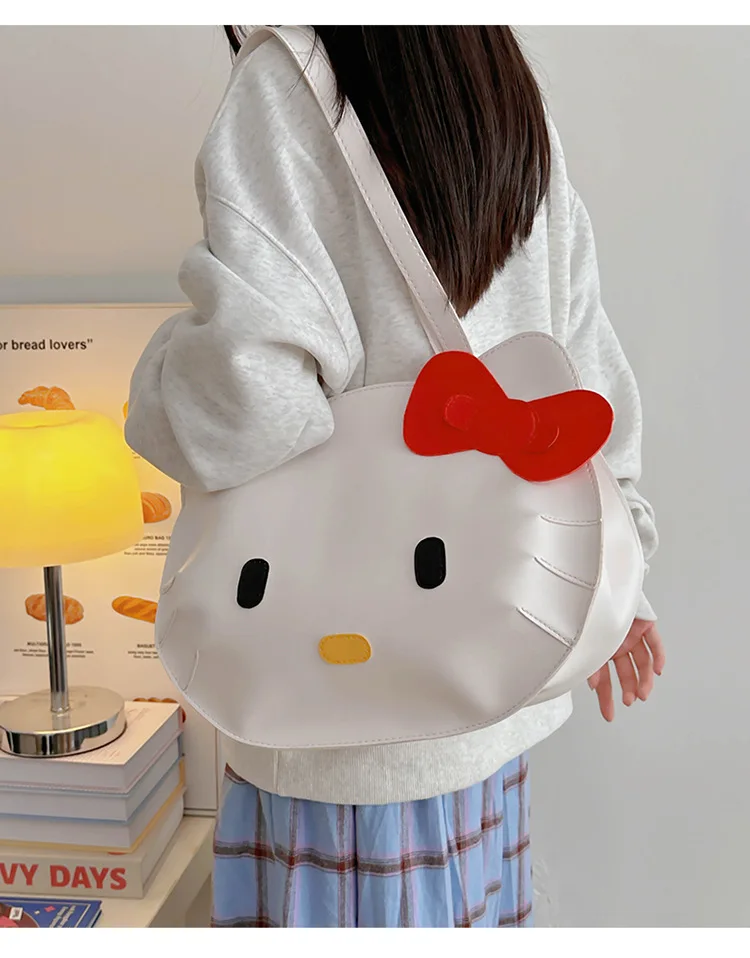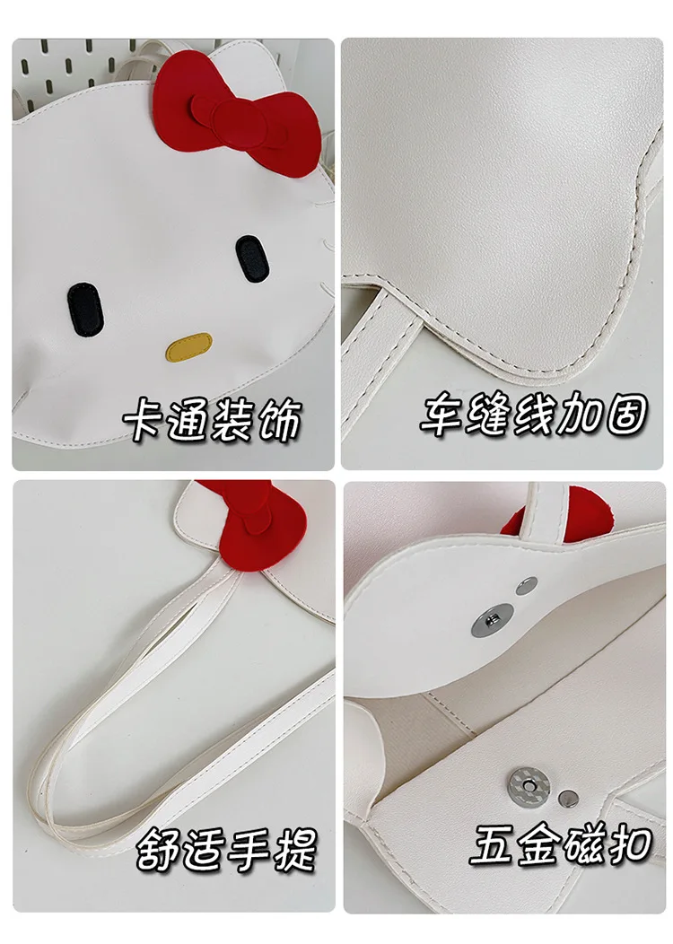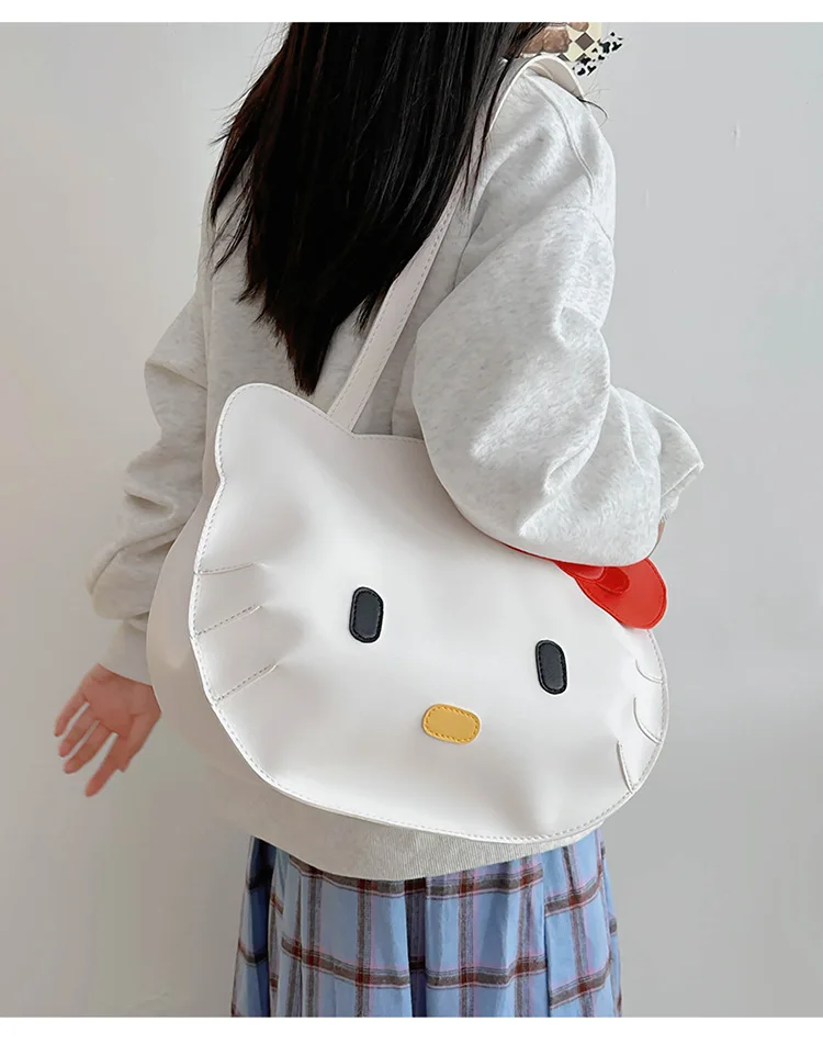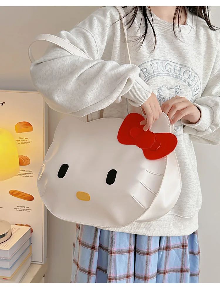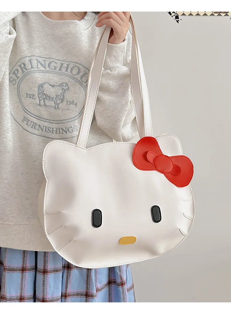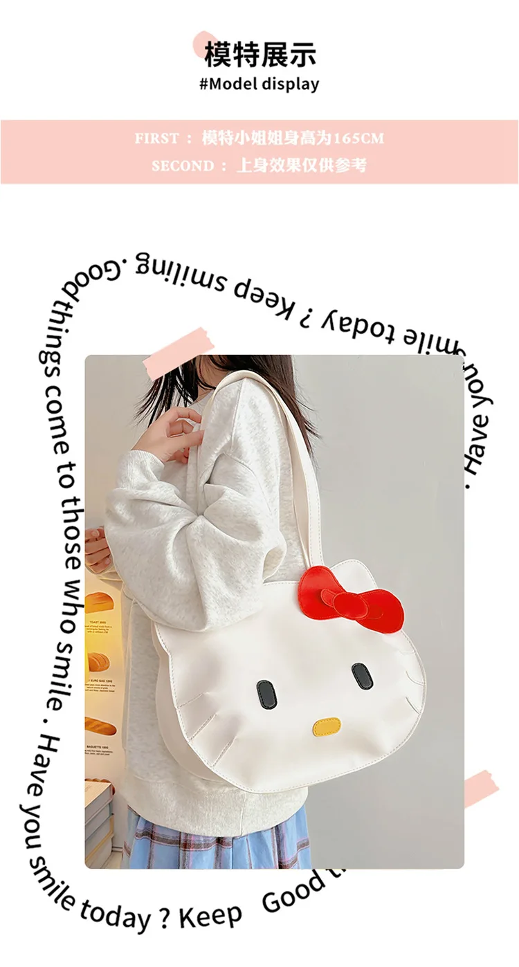 Sanrio Hello Kitty Shoulder Bags Cute Cartoon Bow Large Capacity PU Handbag Y2k Fashion Student Commuting Tote Bag for Girl Gift