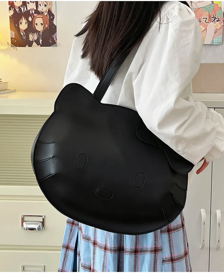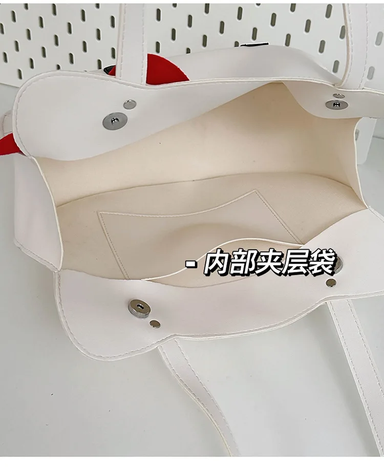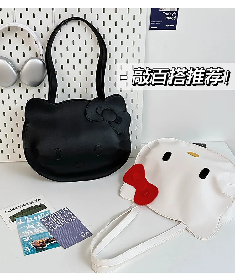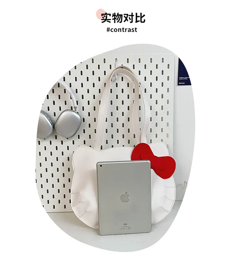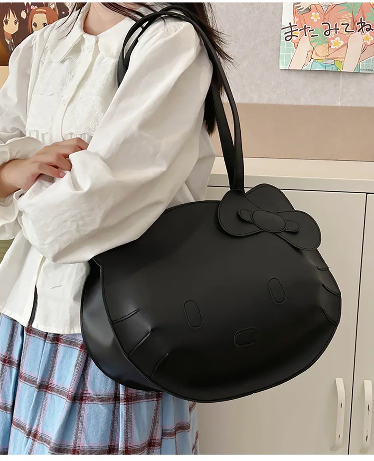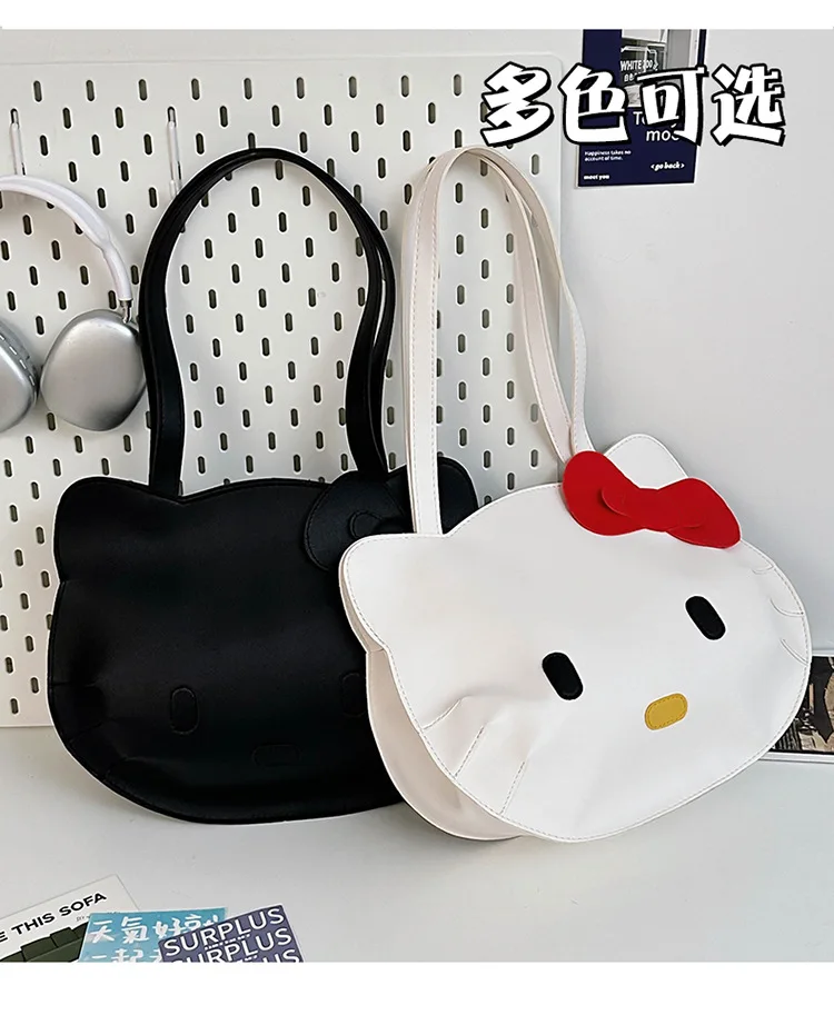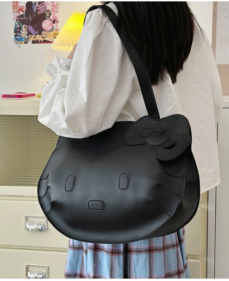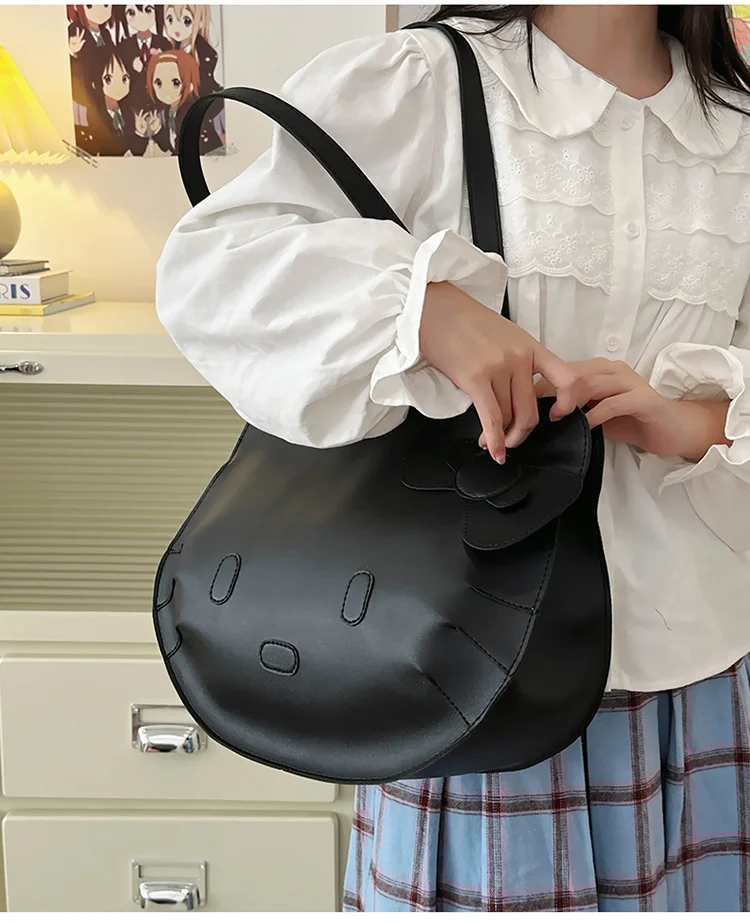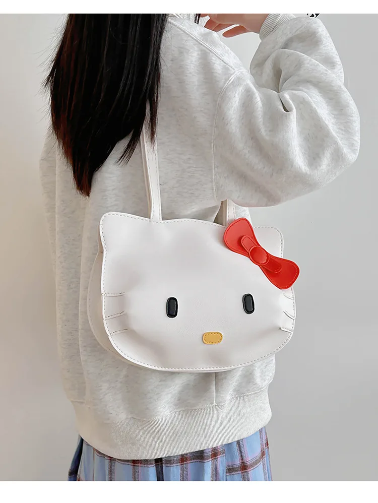 Sanrio Hello Kitty Shoulder Bags Cute Cartoon Bow Large Capacity PU Handbag Y2k Fashion Student Commuting Tote Bag for Girl Gift