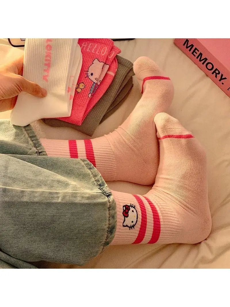 Sanrio Hello Kitty Winter Autumn Warm Socks Children Long Socks Women Girls Costume Accessories Hello Kitty Things Y2K Sock 2024