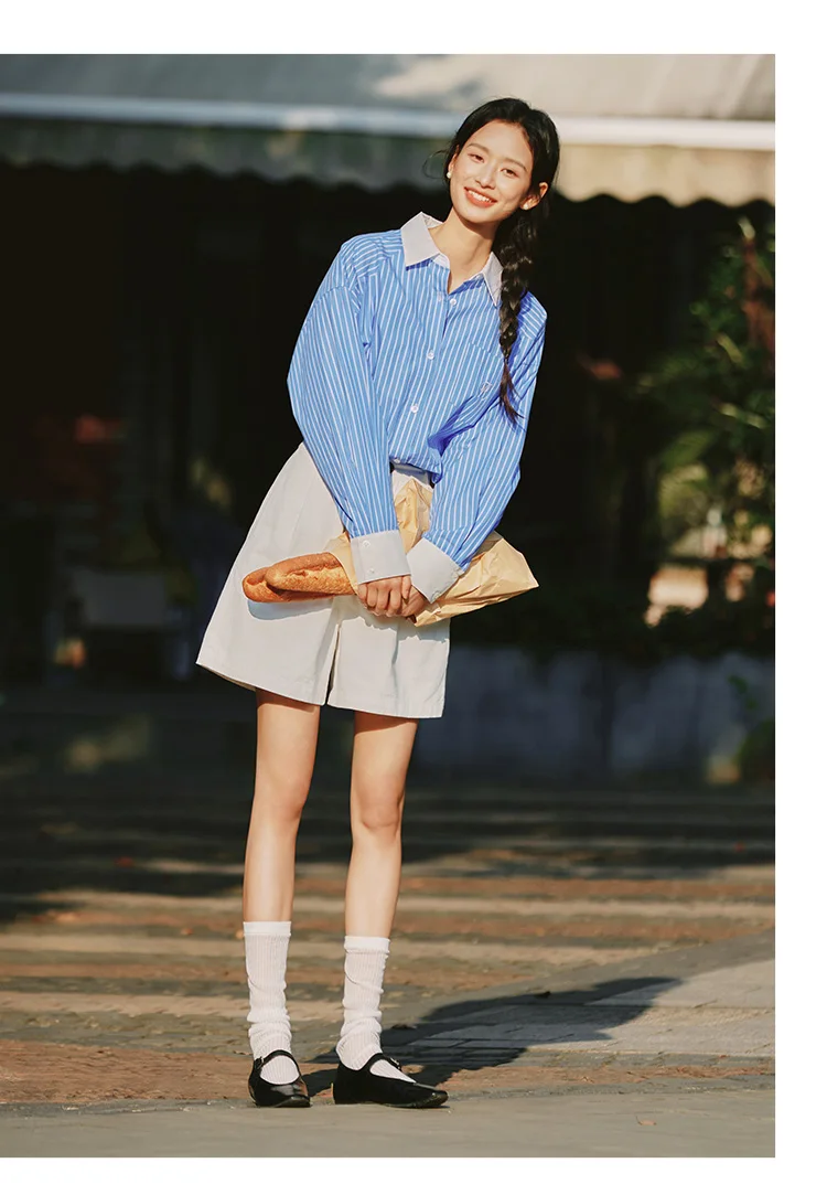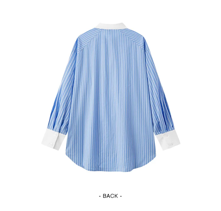 Semir Long Sleeve Shirt Women Mid-long Style Striped Pure Cotton 2025 New Spring Embroidery Oversize Blouse for Commuting