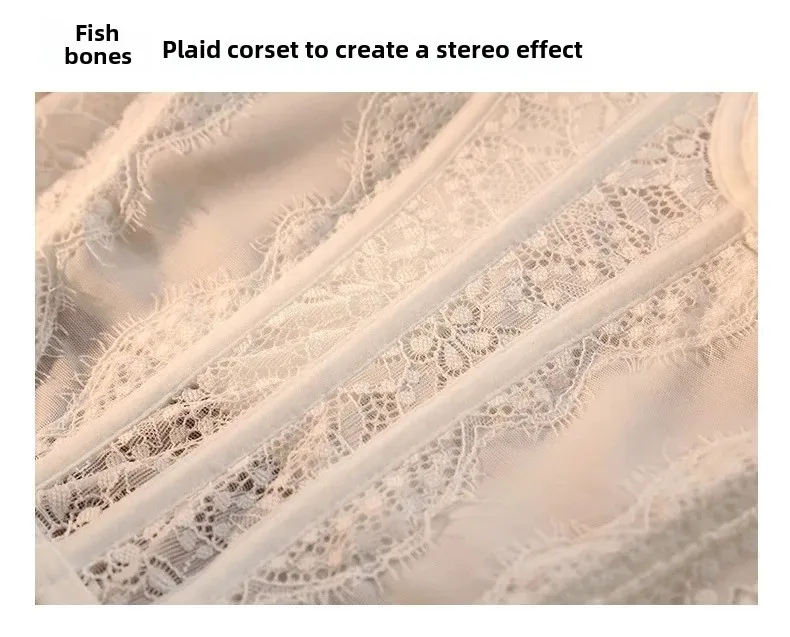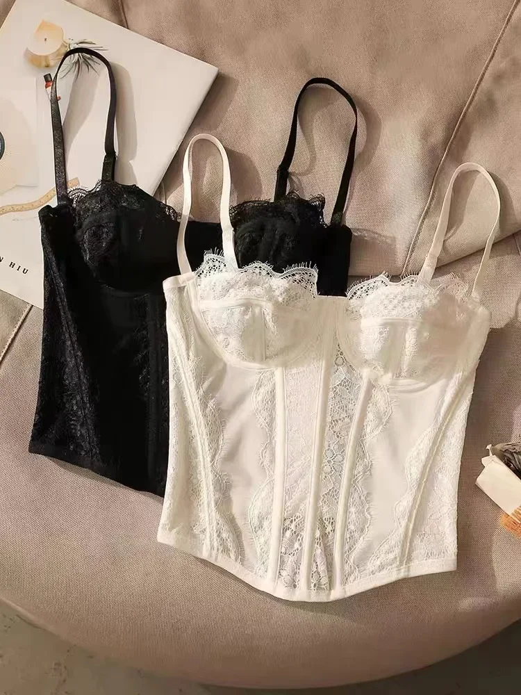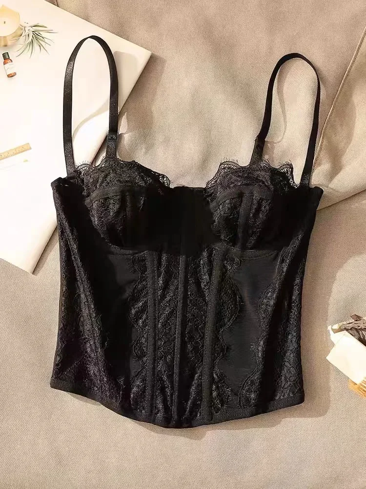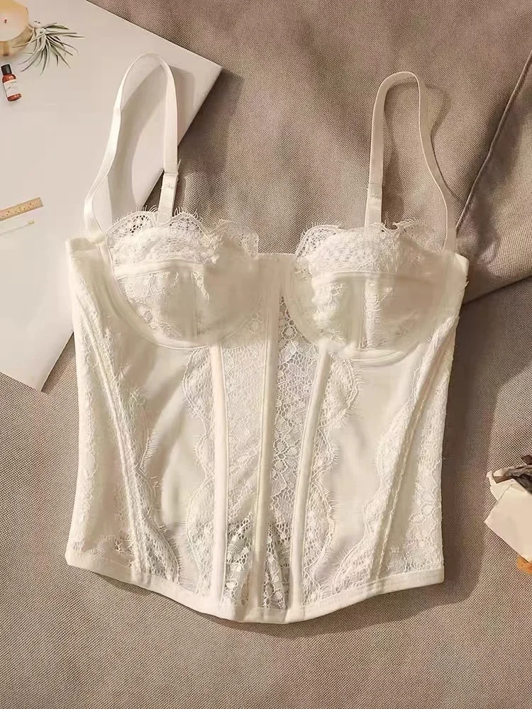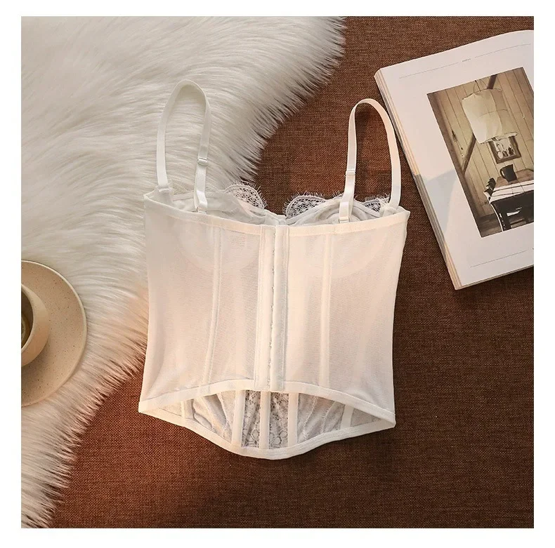 Sexy Gathered Tight Fitting Corset Top Lace Trimmed Transparent Pure Desire Tank Top Polyester Fiber Material From China Mainlan