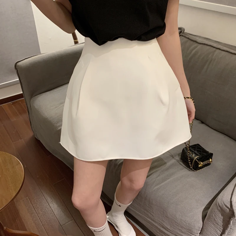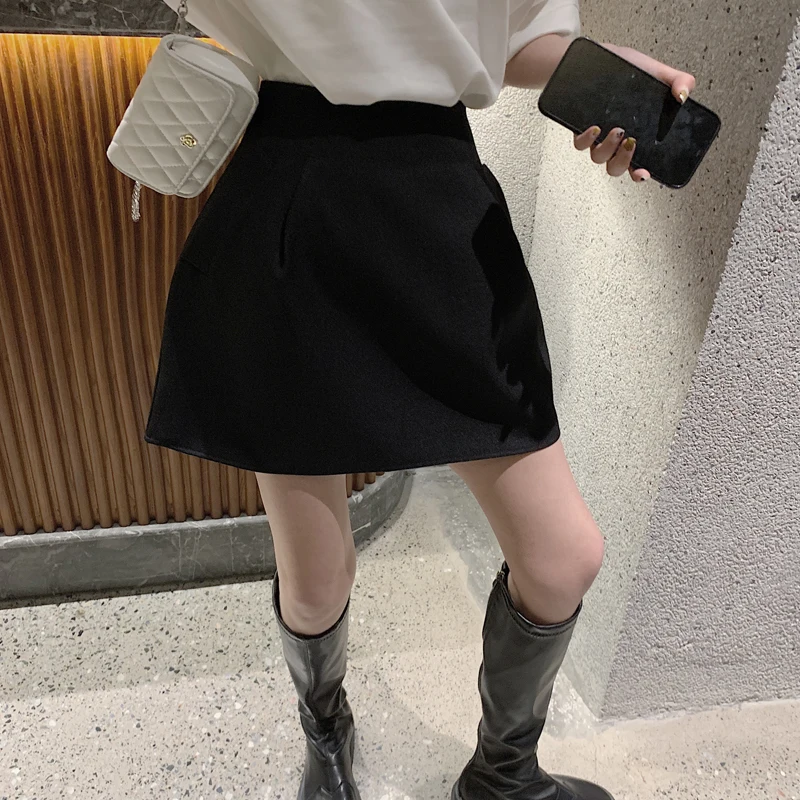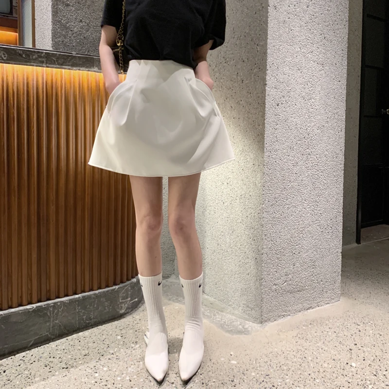 Sexy High Waist Wild Faldas Jupe Short Puffy Pocket Black Skirts for Women Y2k White Casual Suit Skirt Work Style Chic