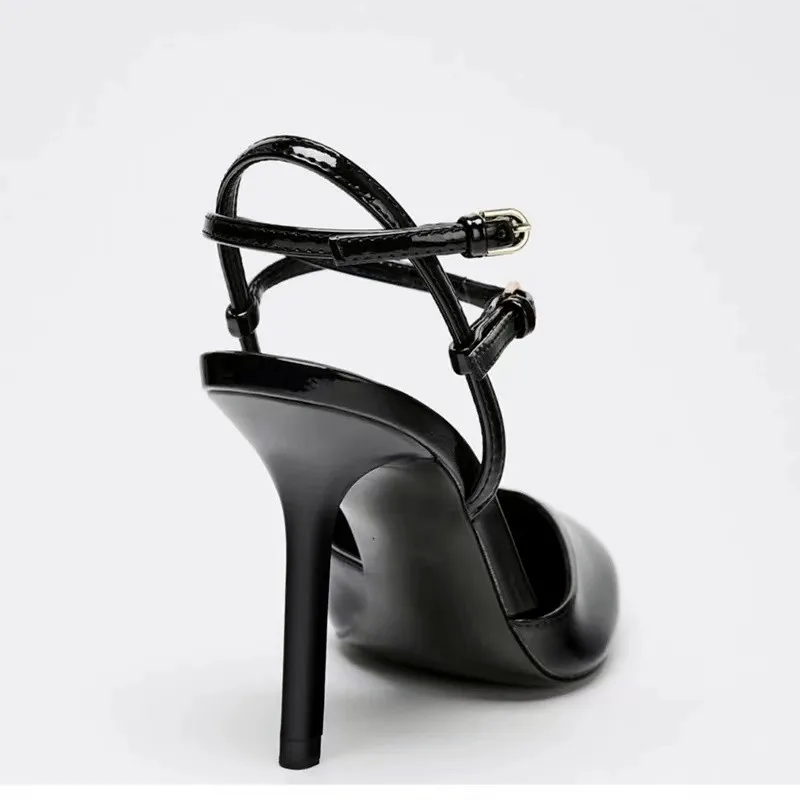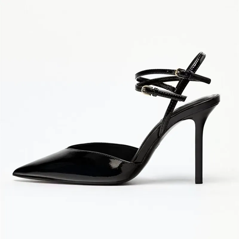 Sexy Pointed Toe Patent Leather Women Pumps Elegant Ankle Strap Buckle High Heels Luxury Designer Shoes Mules Heeled Sandals