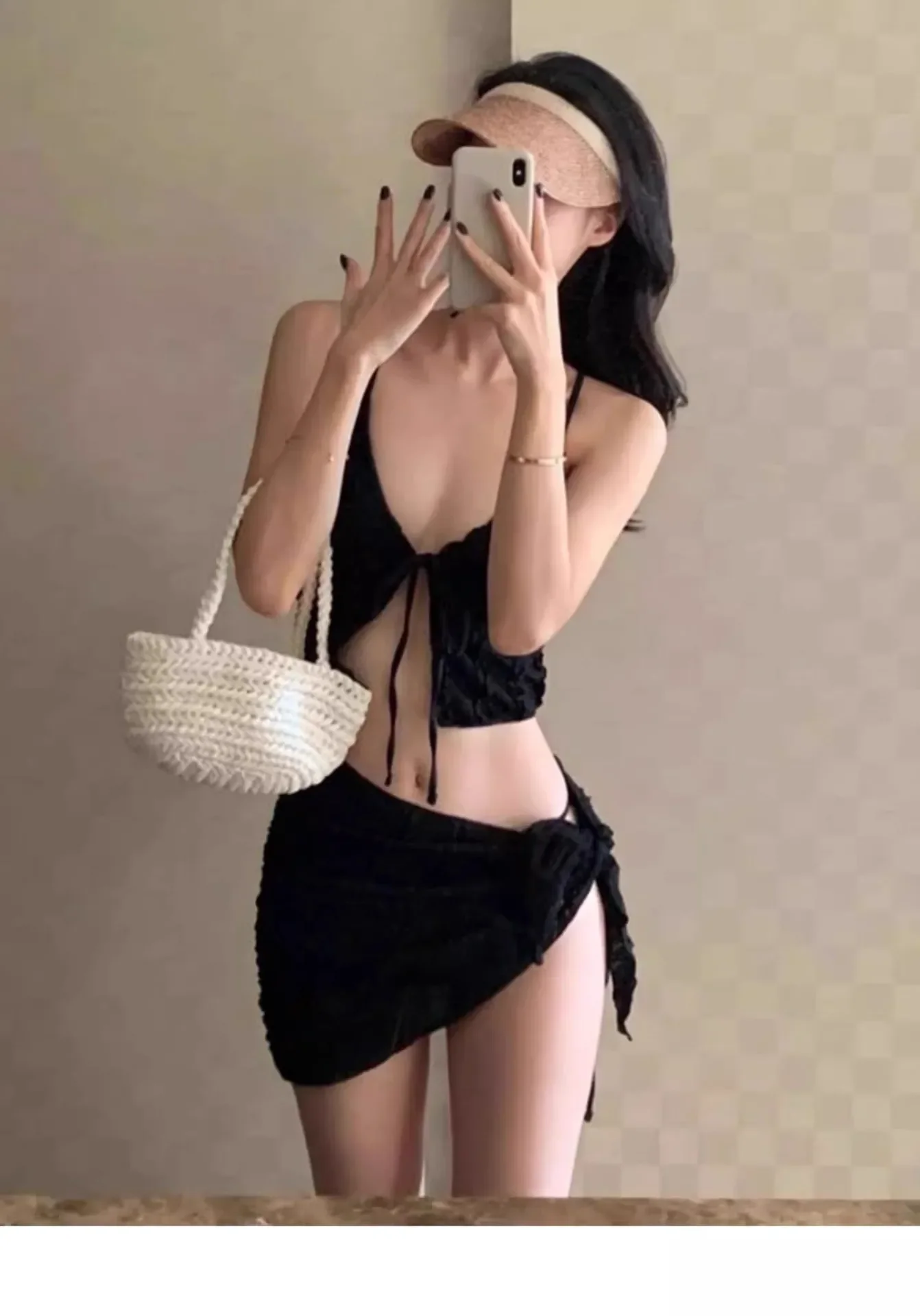 Sexy Three-Piece Bikini Swimsuit Women's Vacation Thermal Spring Separate Slimming Korean Ins High-End Feel Cross-Border