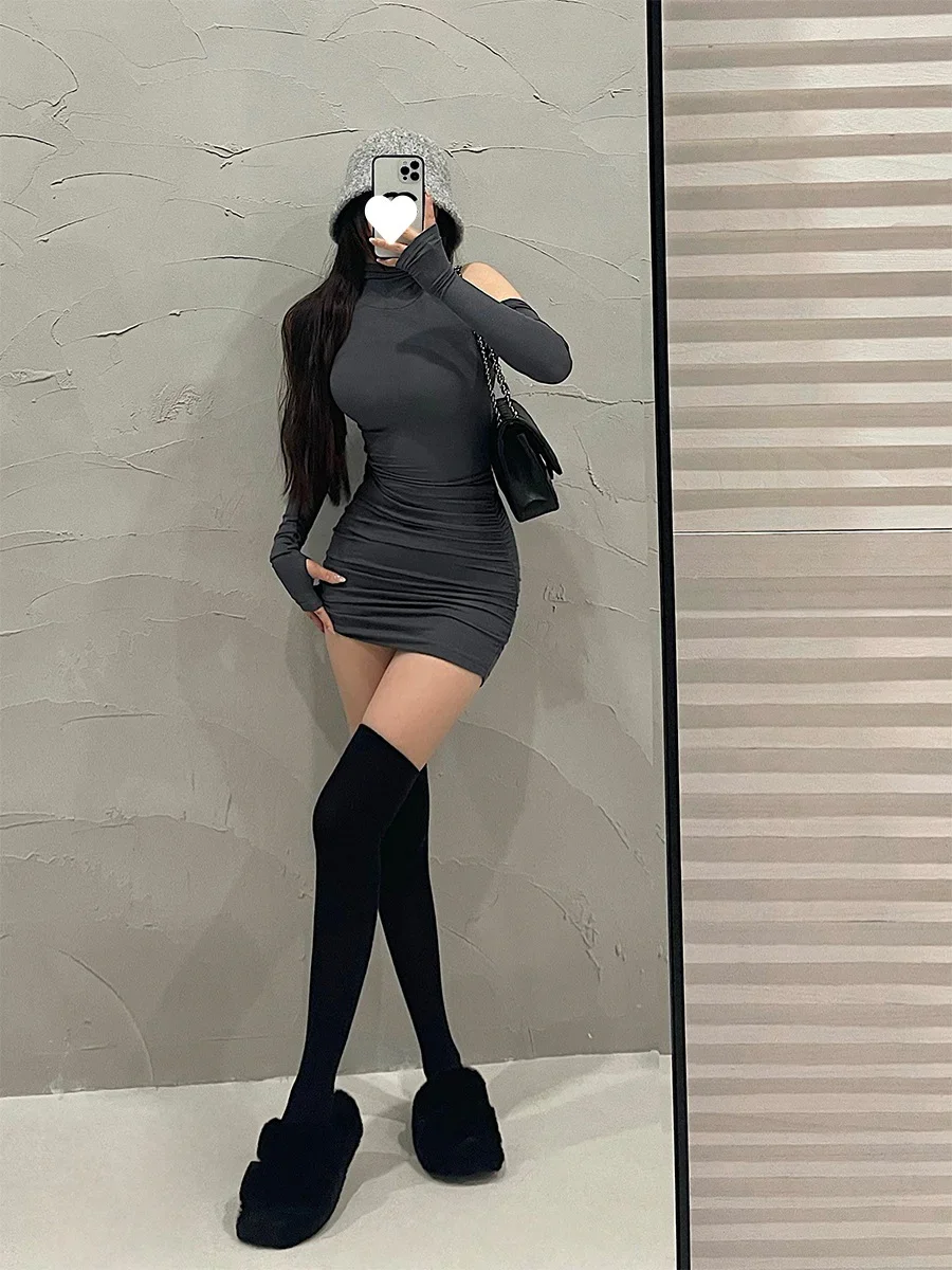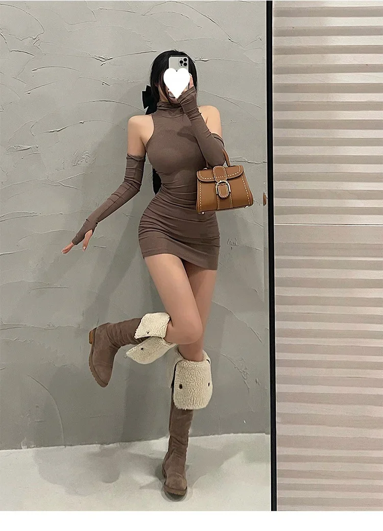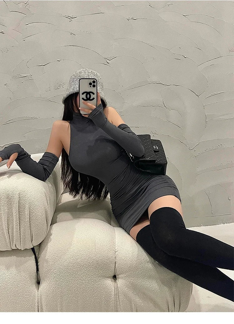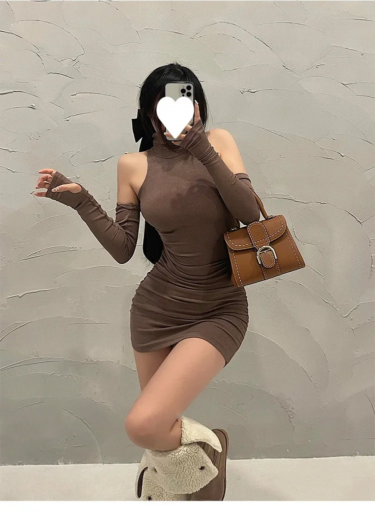 Spring Sexy High Collar Dress Spicy Sweet Tight Pure Desire Style Halter Wrap Hip Dress Women