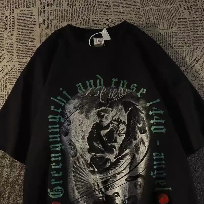 Summer Gothic Retro Print Graphic T shirt Top Fashion Y2K Men and Women Street Hip Hop Harajuku Loose Oversized T shirt