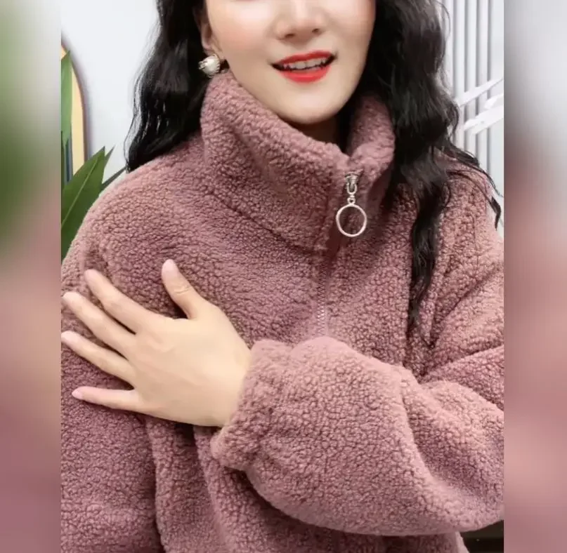 Thickened Fleece Winter Jacket Warm Cotton Clothes Anti-Aging Women's Loose Slimming Top High Collar Full Sleeve Polyester Fiber