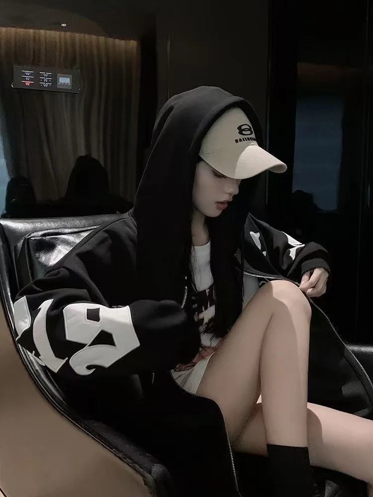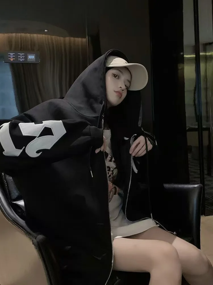 This year's new autumn and winter tide brand letter fashion hooded couple hoodie senior design sense loose large size coat