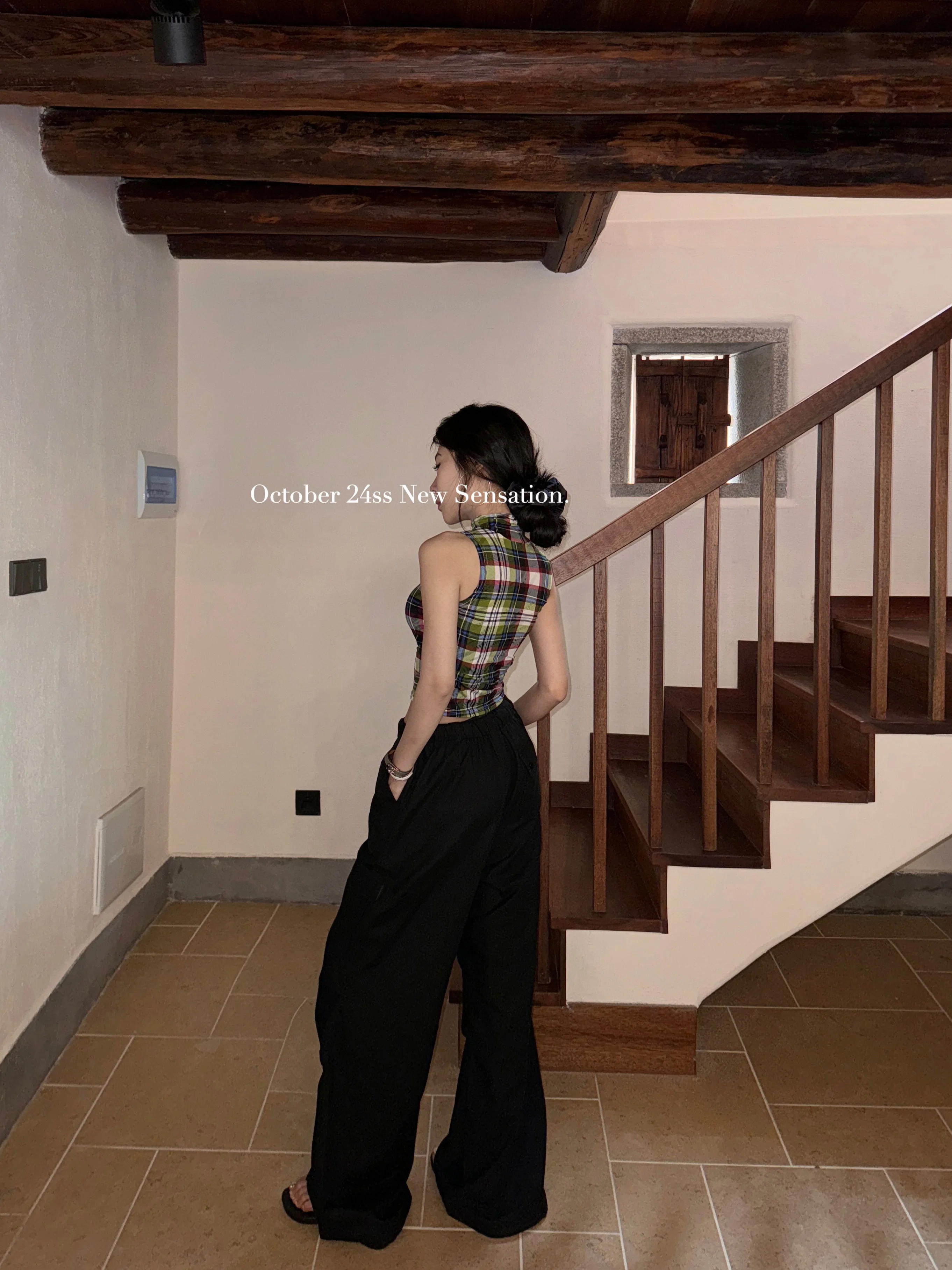 Tonngirls Vintage Tank Tops Plaid Sleeveless Skinny American Retro Crop Tops Grunge Y2k Tank Tops Streetwear Summer Classical